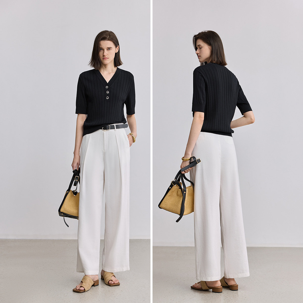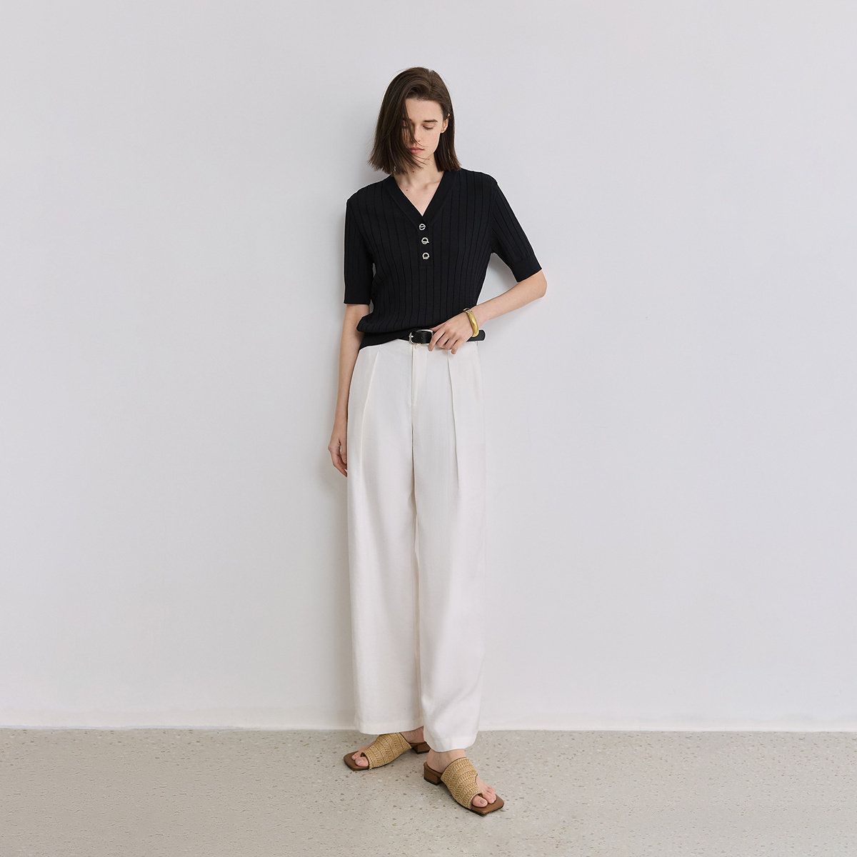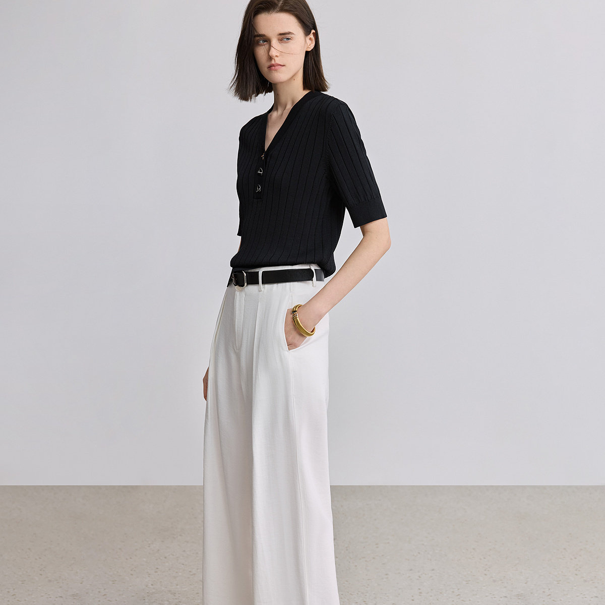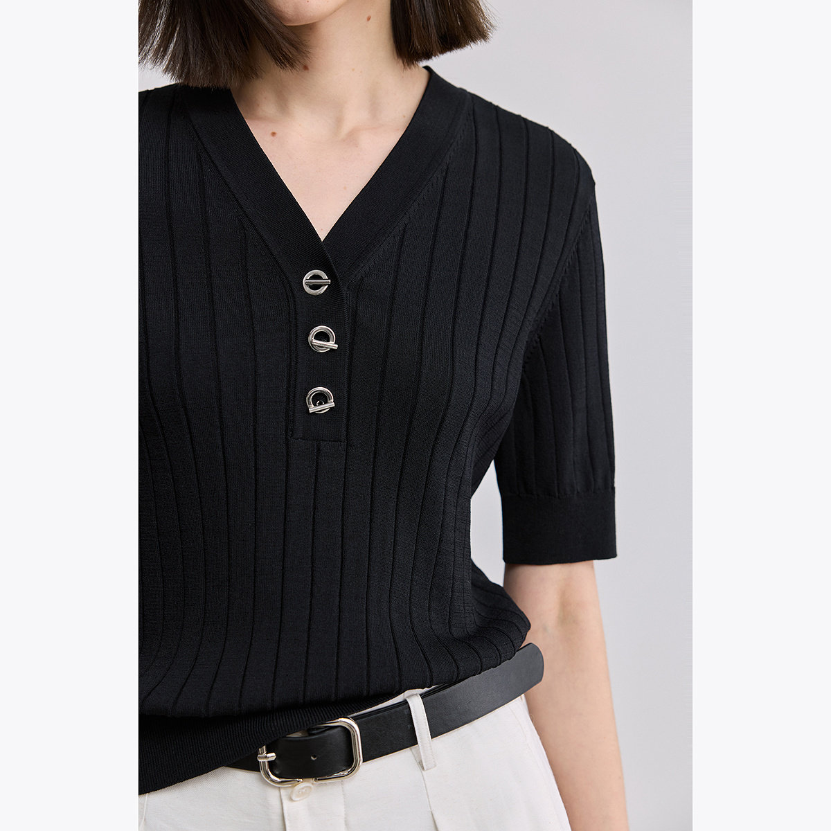 LILY2026夏季新款女装修身显瘦V领短款小上衣黑色短袖轻薄针织衫