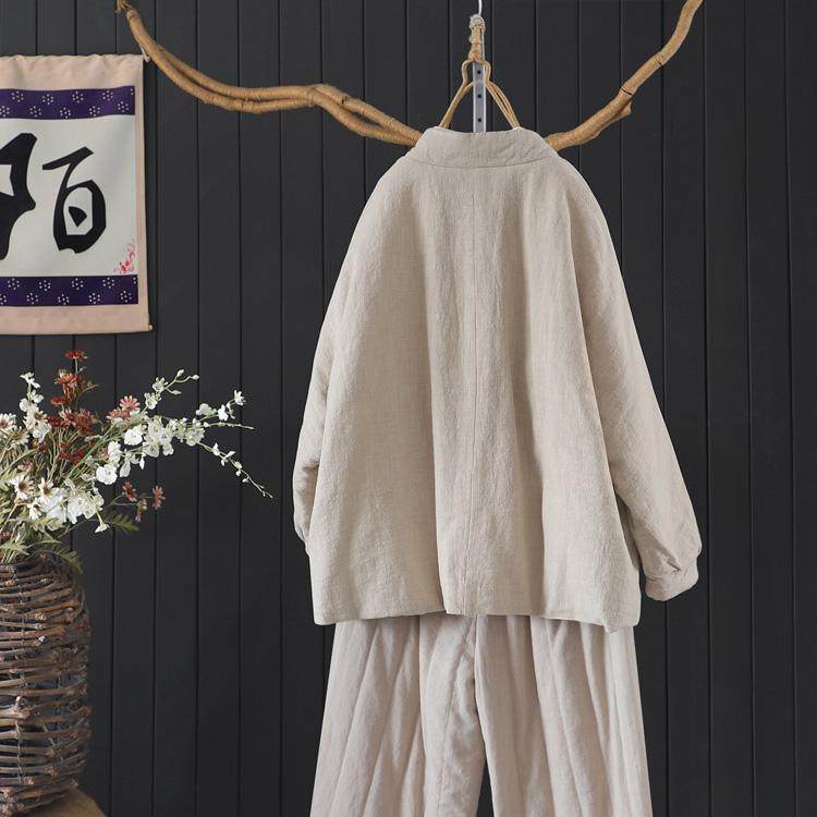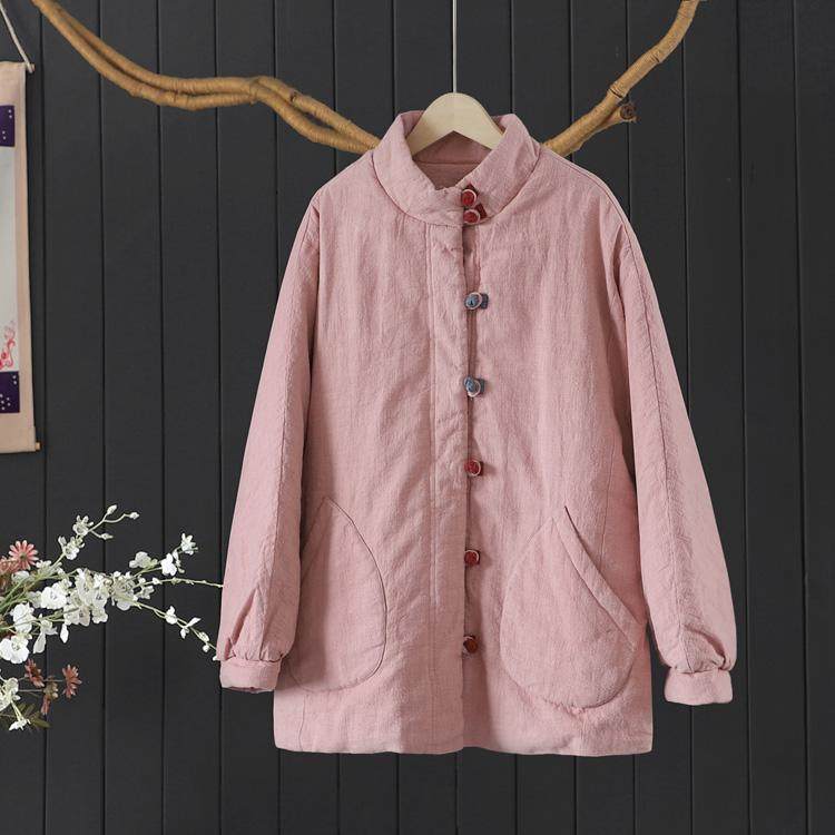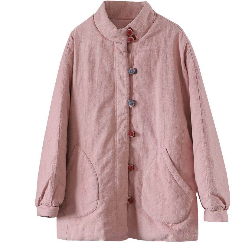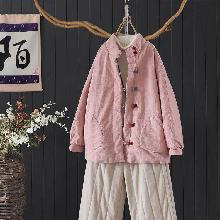 文艺彩色盘扣夹棉加厚亚麻保暖外套女冬季国风遮臀中长款棉衣棉服
