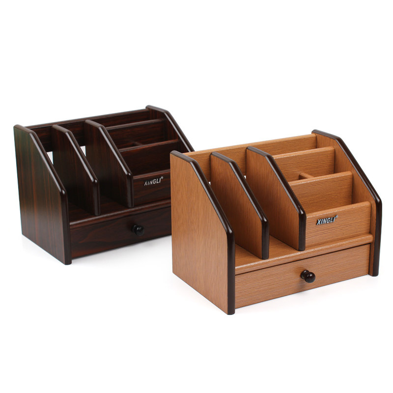 笔筒多功能创意桌面办公家居用品礼品收纳家居收纳木制笔座带纸巾收纳盒复古办公桌面笔筒摆件收纳文具可定制