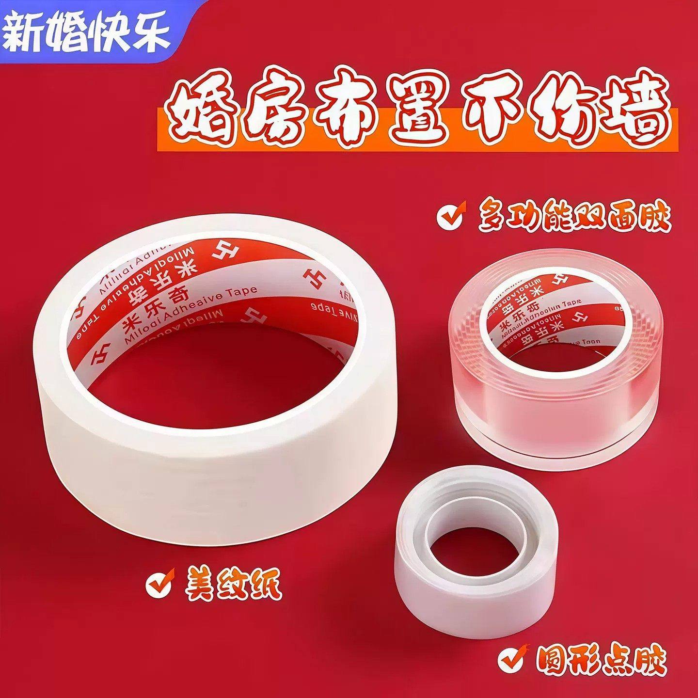 结婚不伤墙方案无痕双面胶美纹纸加纳米胶多功能魔力胶婚房用品