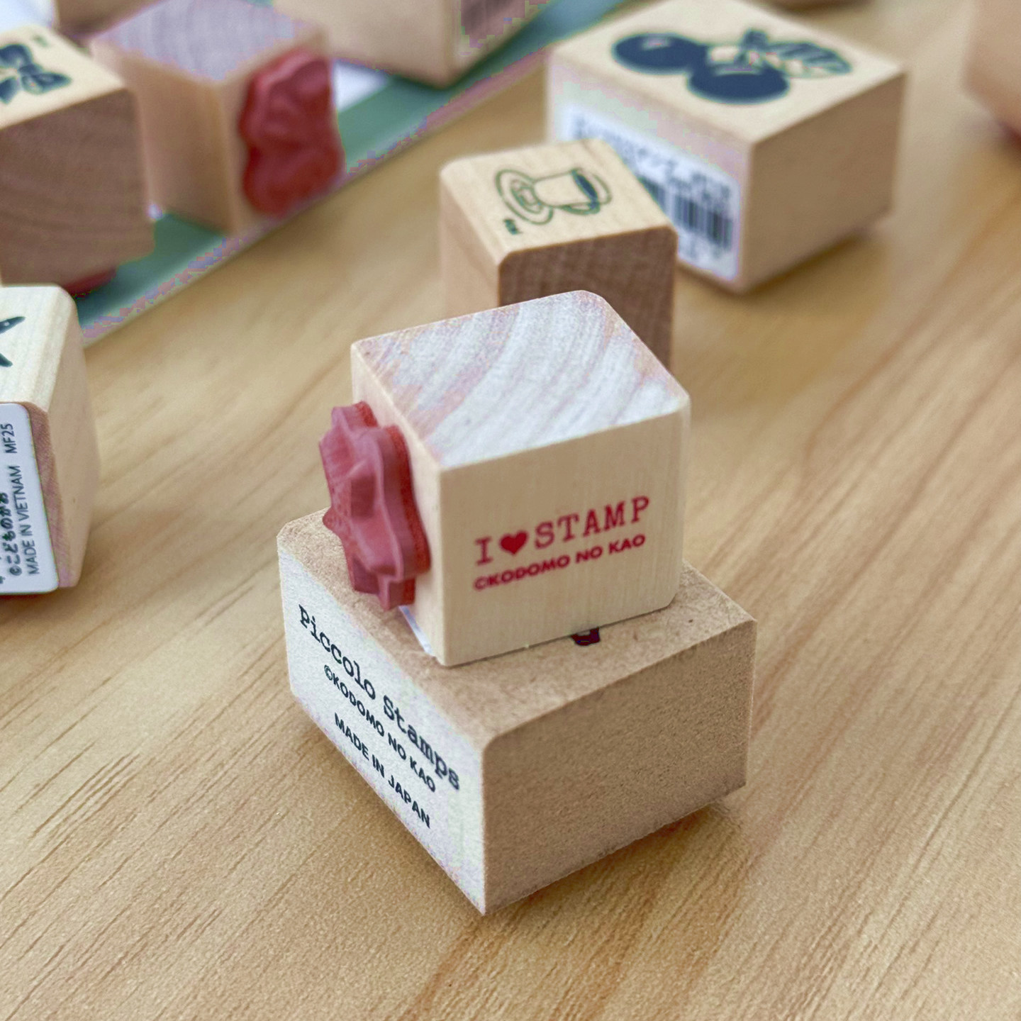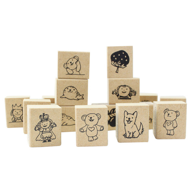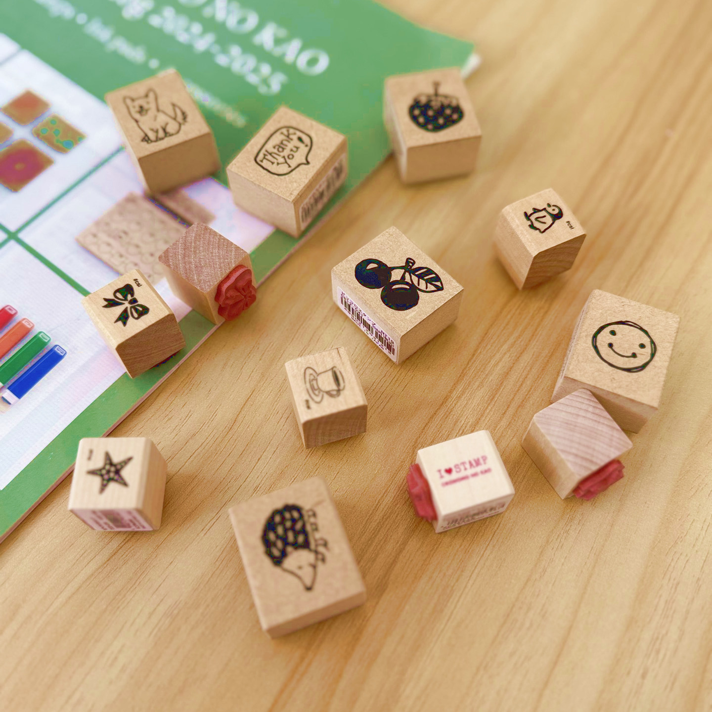 日本KODOMO NO KAO可爱动物笑脸木质印章手账素材DIY装饰图案章