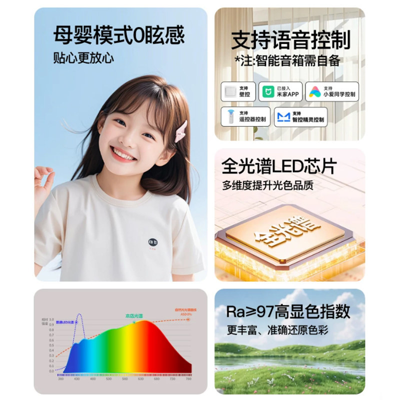 wow上下双光源卧室吸顶灯全光谱护眼高亮智能母婴护眼书房吸顶灯