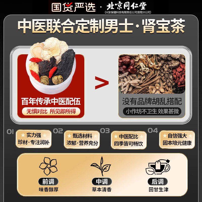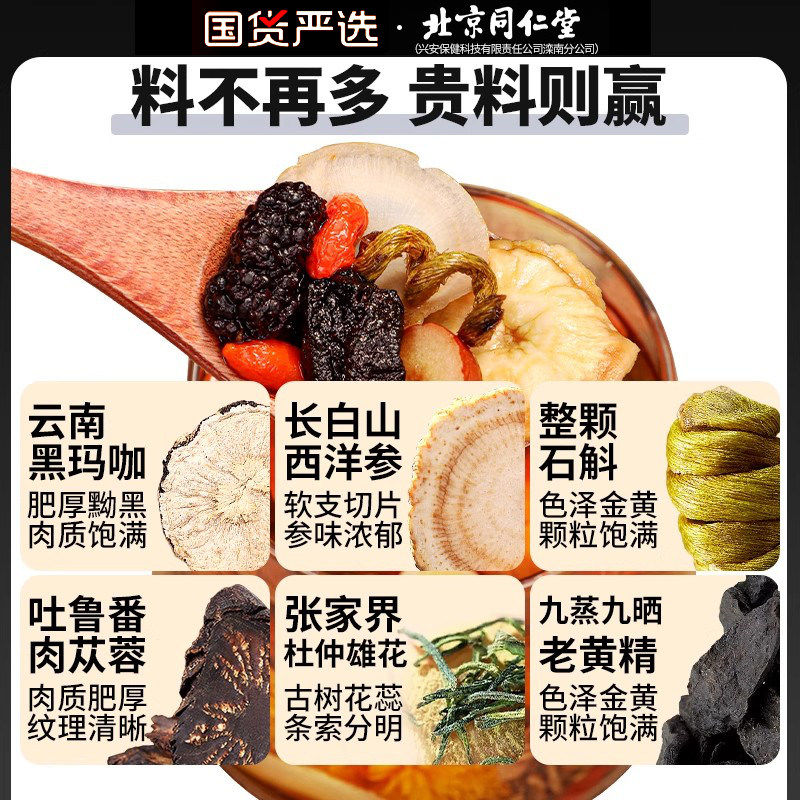北京同仁堂五宝八宝茶人参肉苁蓉黄精枸杞养生茶包男熬夜补精强肾