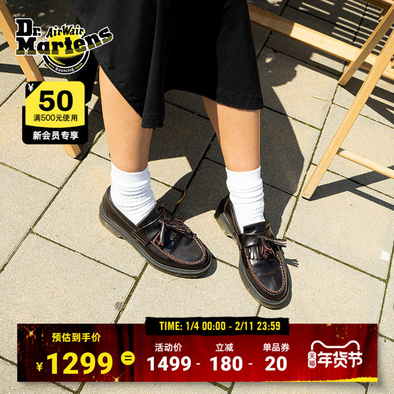 Dr.Martens马丁博士Adrian Cherry秋一脚蹬光面皮樱桃红乐福皮鞋