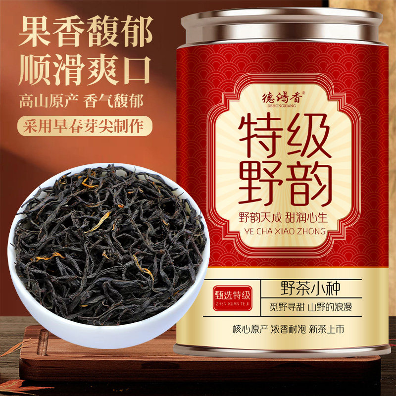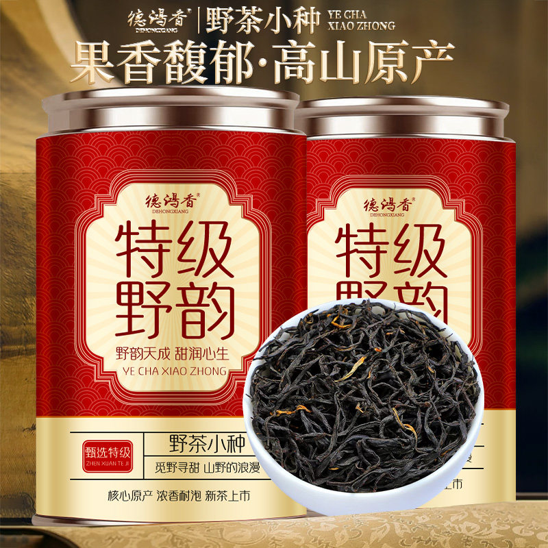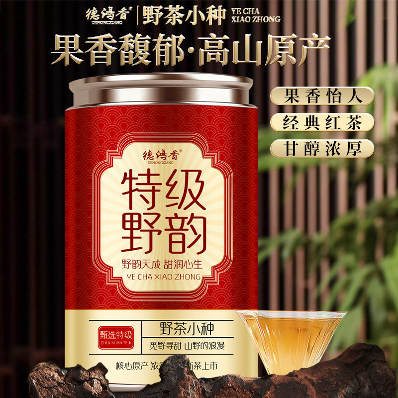 德鸿香茶叶 特级野茶 野韵小种红茶 甜香醇厚 金牡丹高山茶罐装