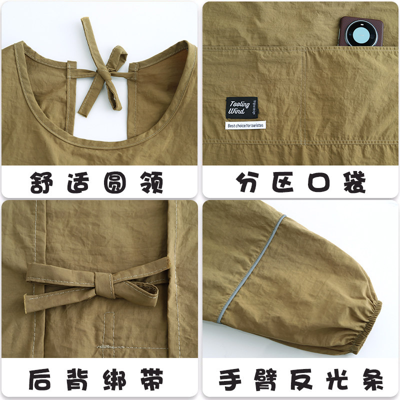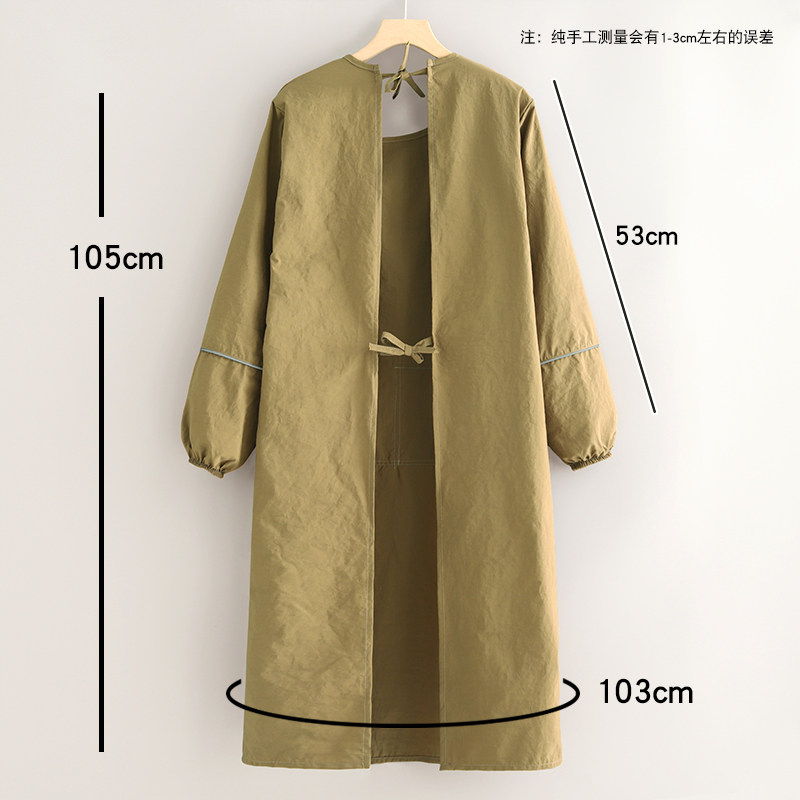 2026日本新款棉麻长袖围裙家用厨房透气罩衣女耐磨防污做饭工作服