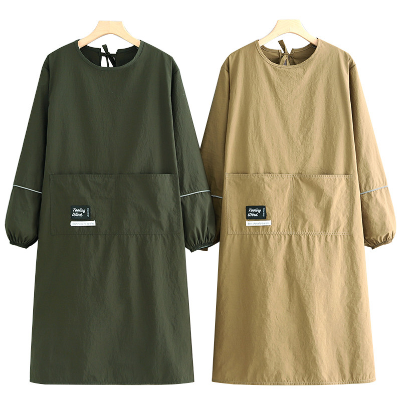 新款棉布耐磨围裙长袖厨房家用防污罩衣透气围腰做饭上班工作服女