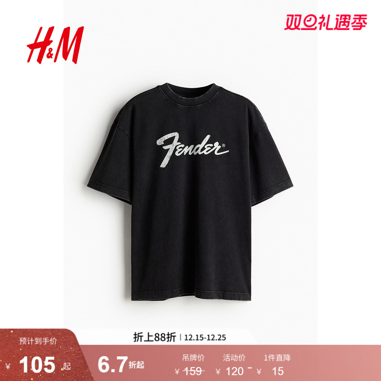 【Fender】HM男装女装T恤秋季重磅印花圆领情侣短袖上衣1159823