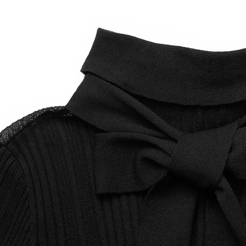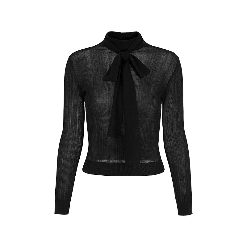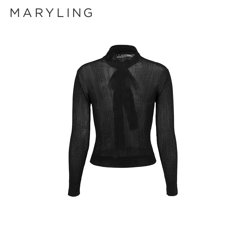 MARYLING玛俪琳2025初春新品黑色高领系带针织套头衫A1FAW03020