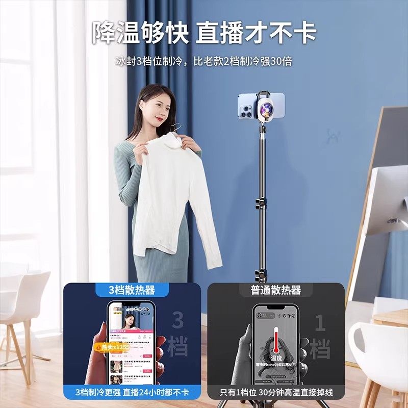 【直播专用】手机散热器超静音半导体制冷降温神器主播打游戏背夹冷却结冰适用黑鲨苹果一加落地直播支架