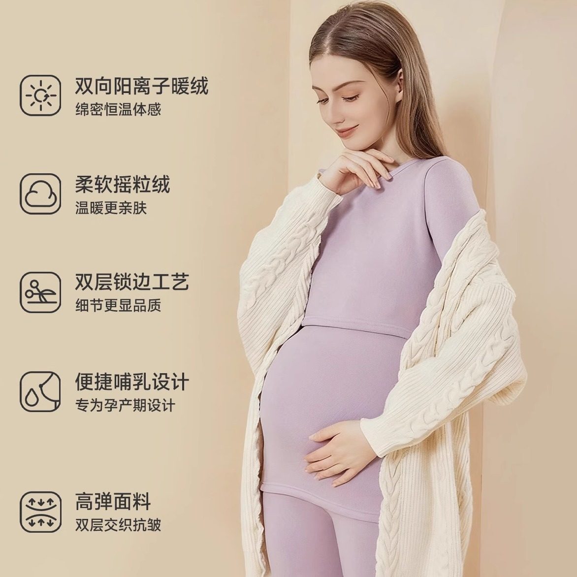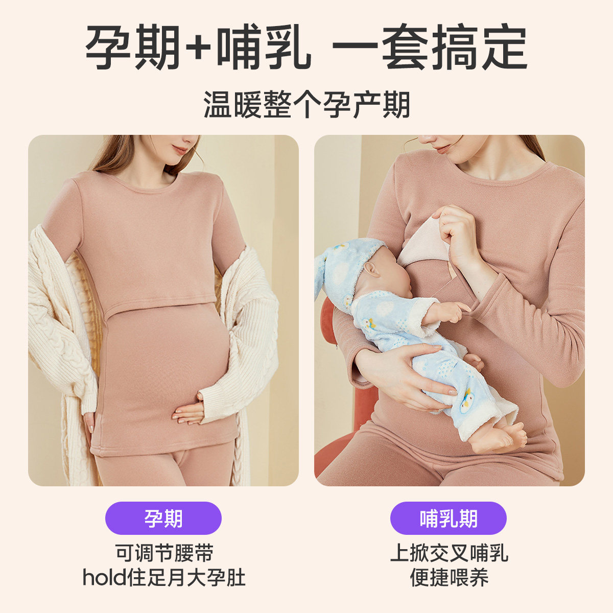 婧麒孕妇秋衣秋裤套装保暖内衣孕期打底产后哺乳喂奶大码月子服冬