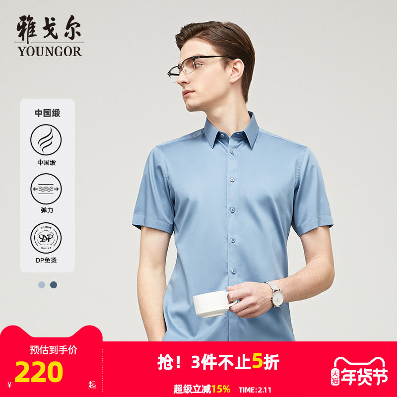 【中国缎衬衫】雅戈尔春夏新品商务休闲缎纹棉弹DP免烫短袖衬衫男