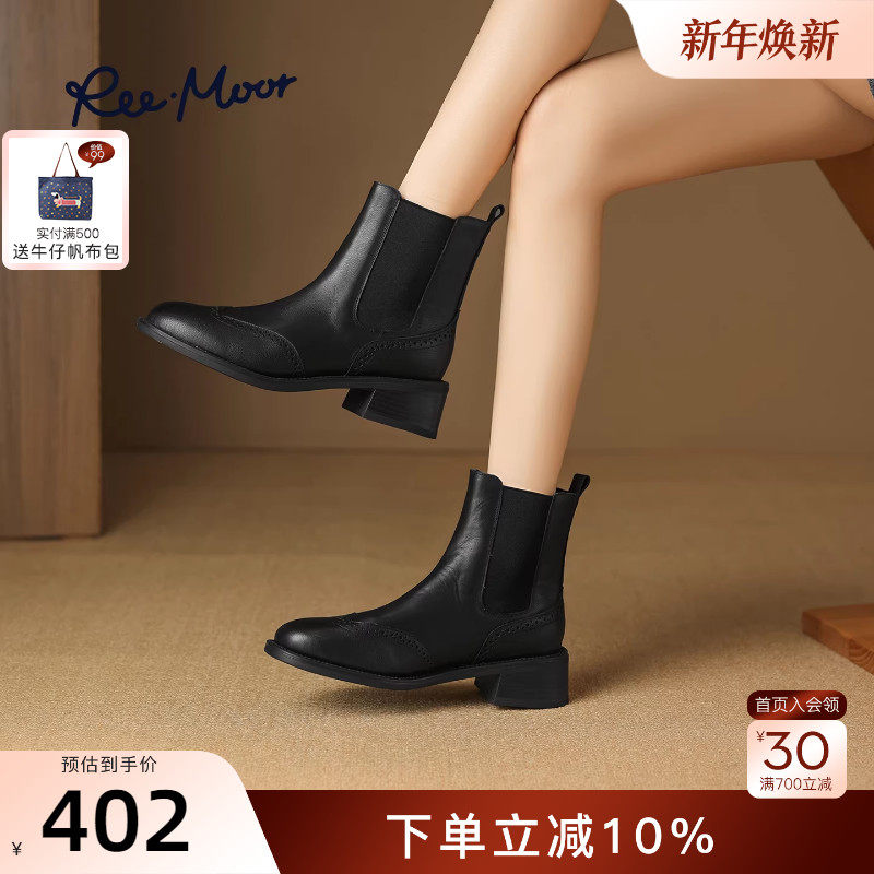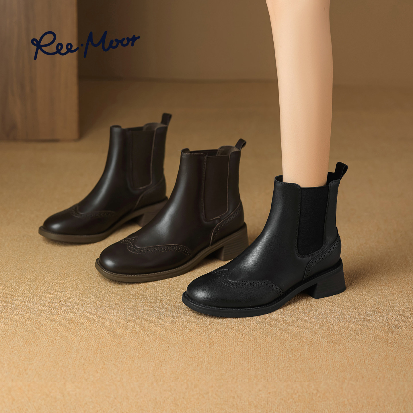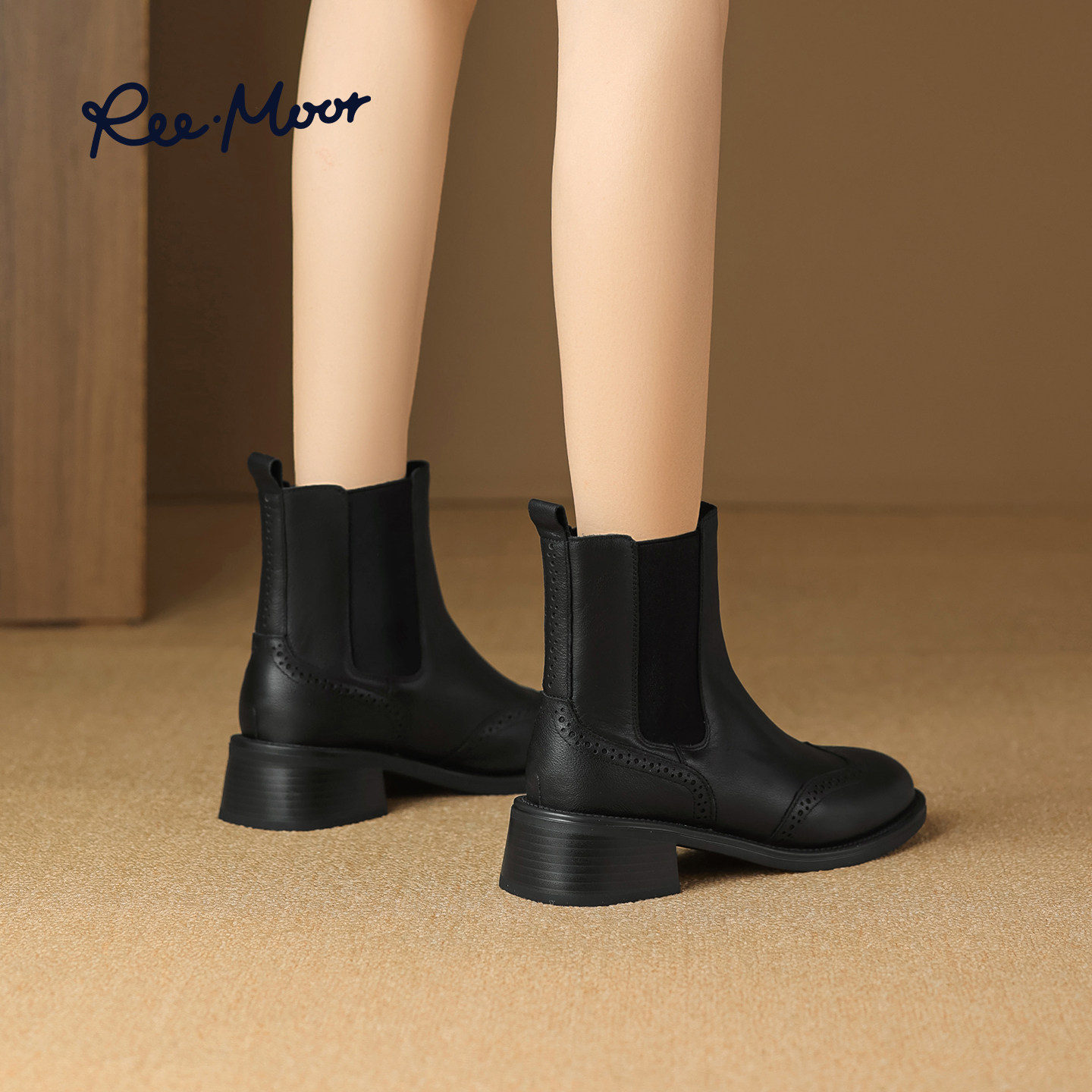 REEMOOR睿慕2025冬季切尔西短靴女粗跟马丁靴英伦风秋冬女鞋