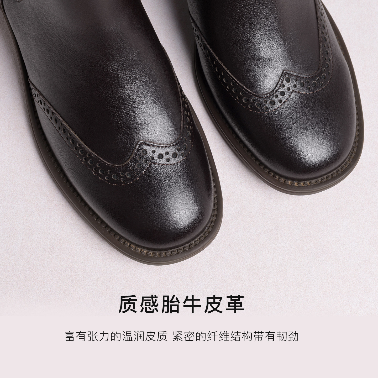 天美意复古厚底加绒切尔西短靴女鞋子瘦瘦靴时装靴皮靴2025冬新款