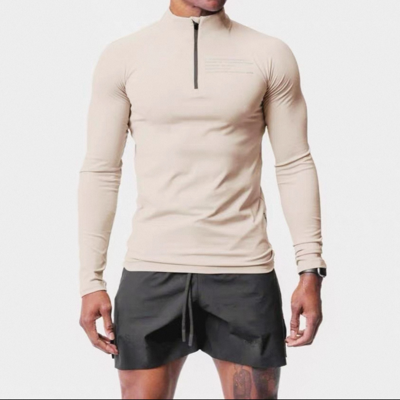 Light Weight运动卫衣跑步健身显型长袖双面德绒男修身加绒半拉链