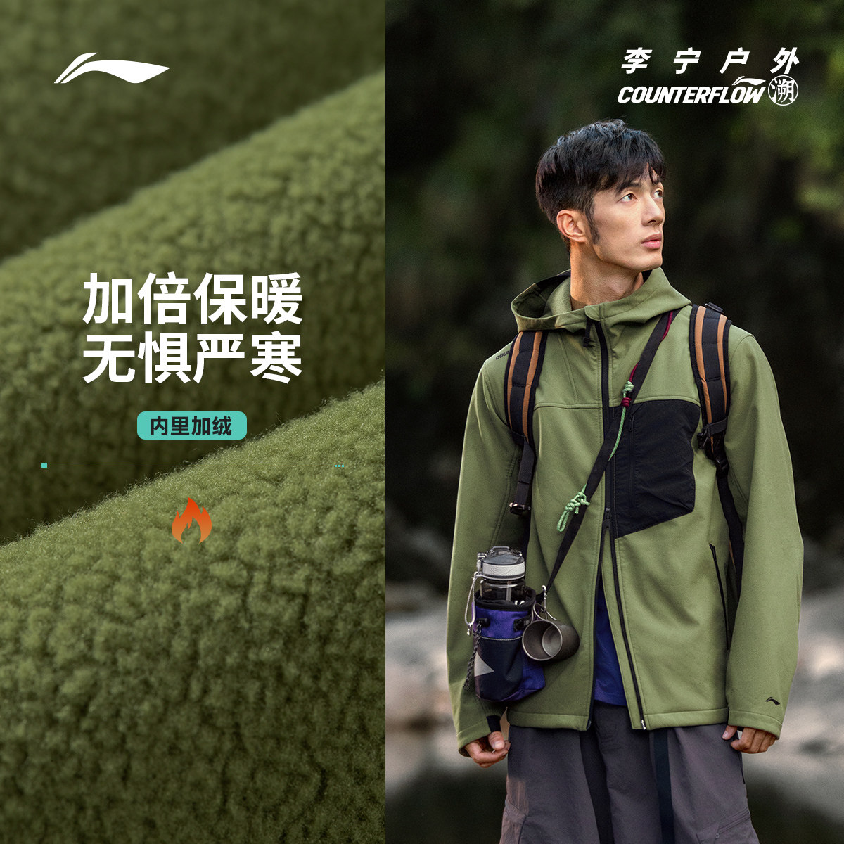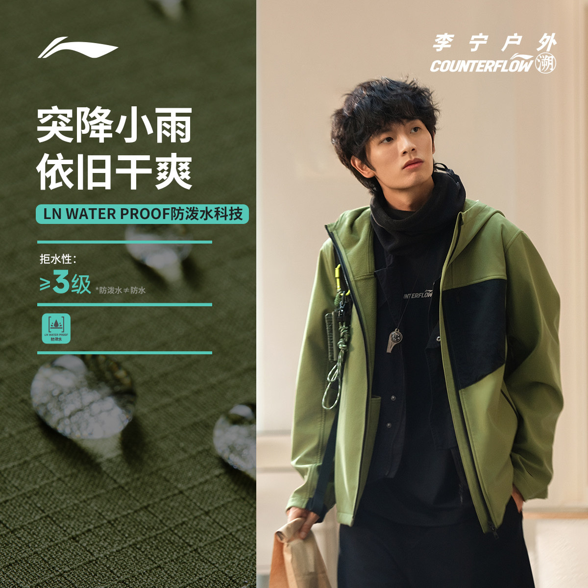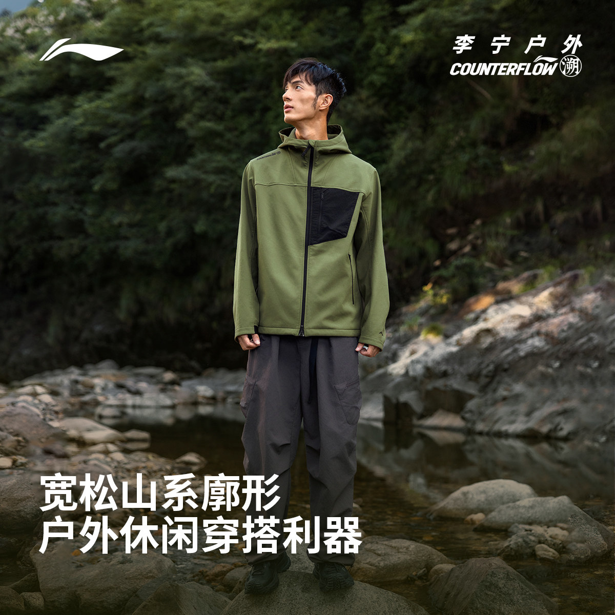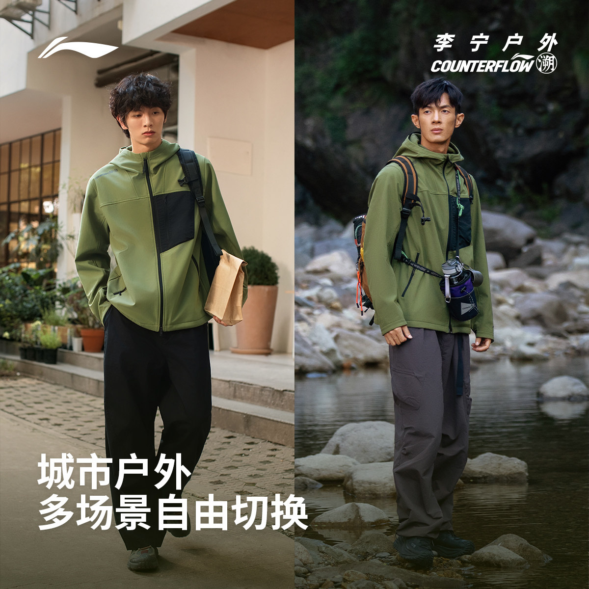 李宁户外CF溯丨软壳衣外套男士防泼水防风梭织上衣运动休闲夹克