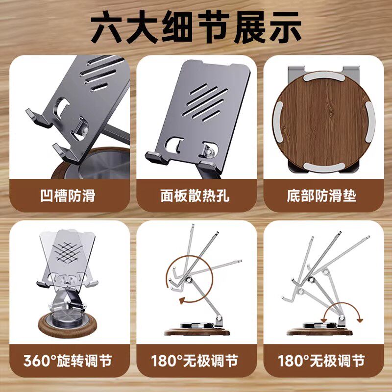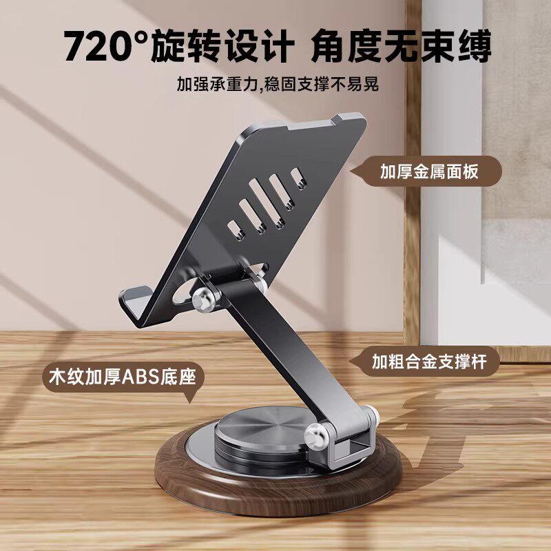 2025新款手机支架桌面懒人平板电脑支撑架可旋转折叠手机架ipad支撑架子金属旋转手机架支架便携胡桃木纹底座