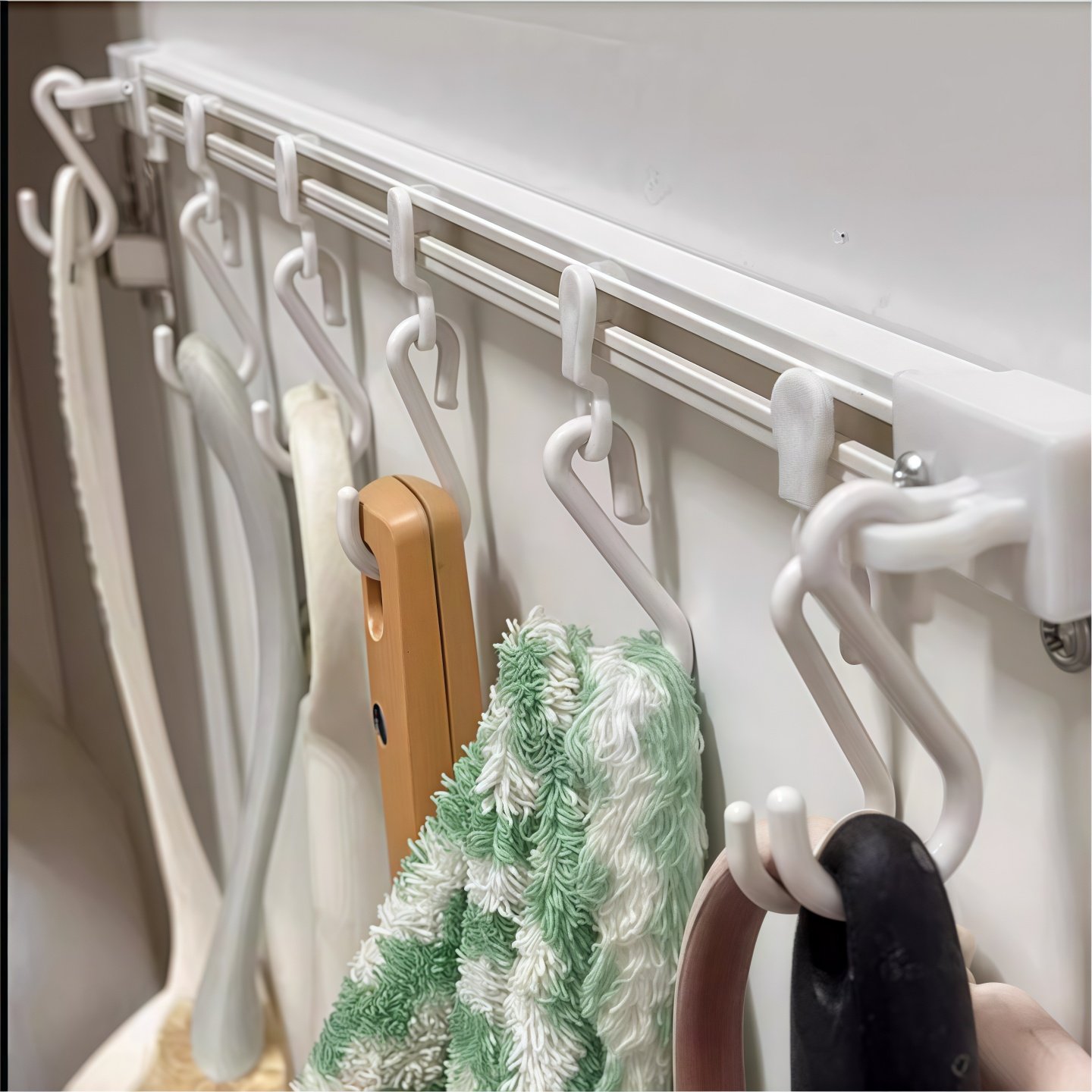 橱柜门后挂钩一排可滑动轨道免打孔粘挂杆神器勺子铲子厨具收纳架