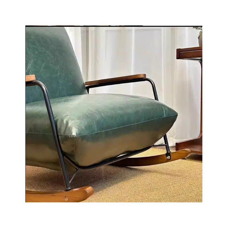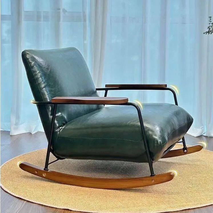 d复古懒人摇摇椅阳台单人休闲椅客厅现代家用成人油蜡皮沙发躺椅