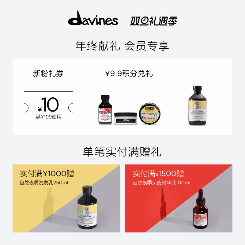 Davines大卫尼斯欧艾洗发水280ml*2清洁发丝丰盈蓬松高颅顶