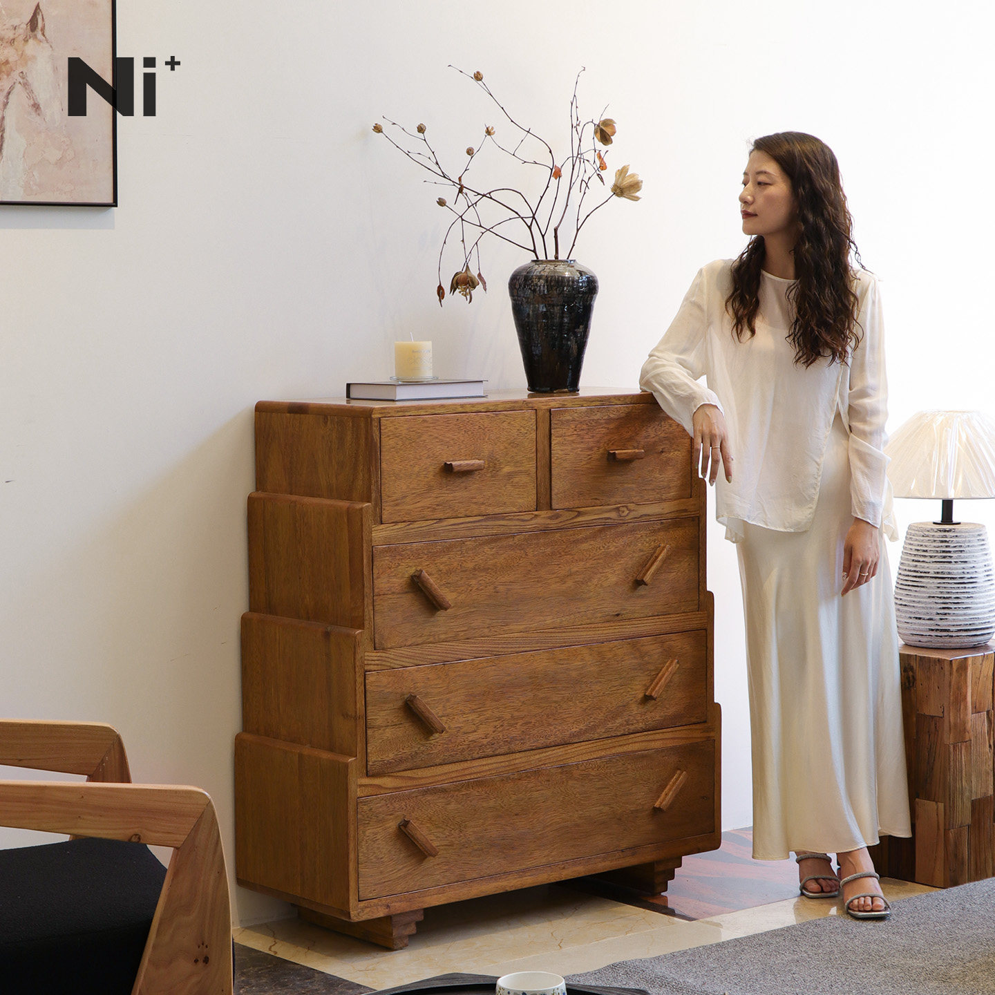 Ni+尼家复古风实木五斗柜客厅中古风收纳柜侘寂风边柜餐厅餐边柜