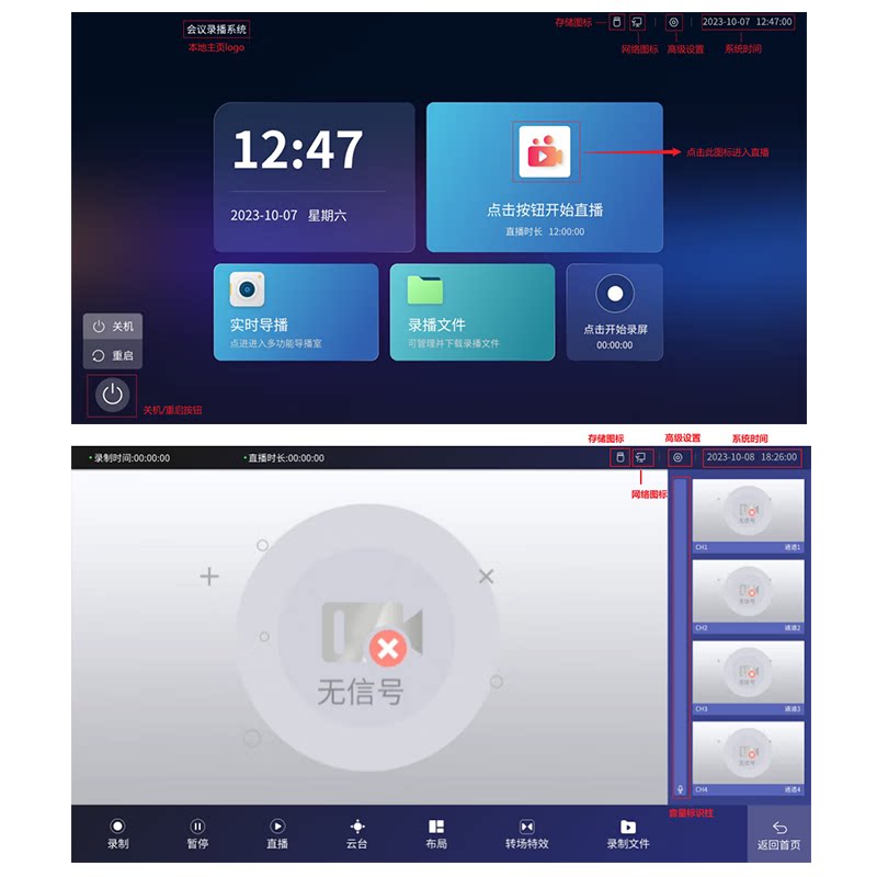 戴浦(DAIPU)国产化视频会议4K超清DP-T220录播直播4路HDMI进+2路HDMI输出1U嵌入式一体机