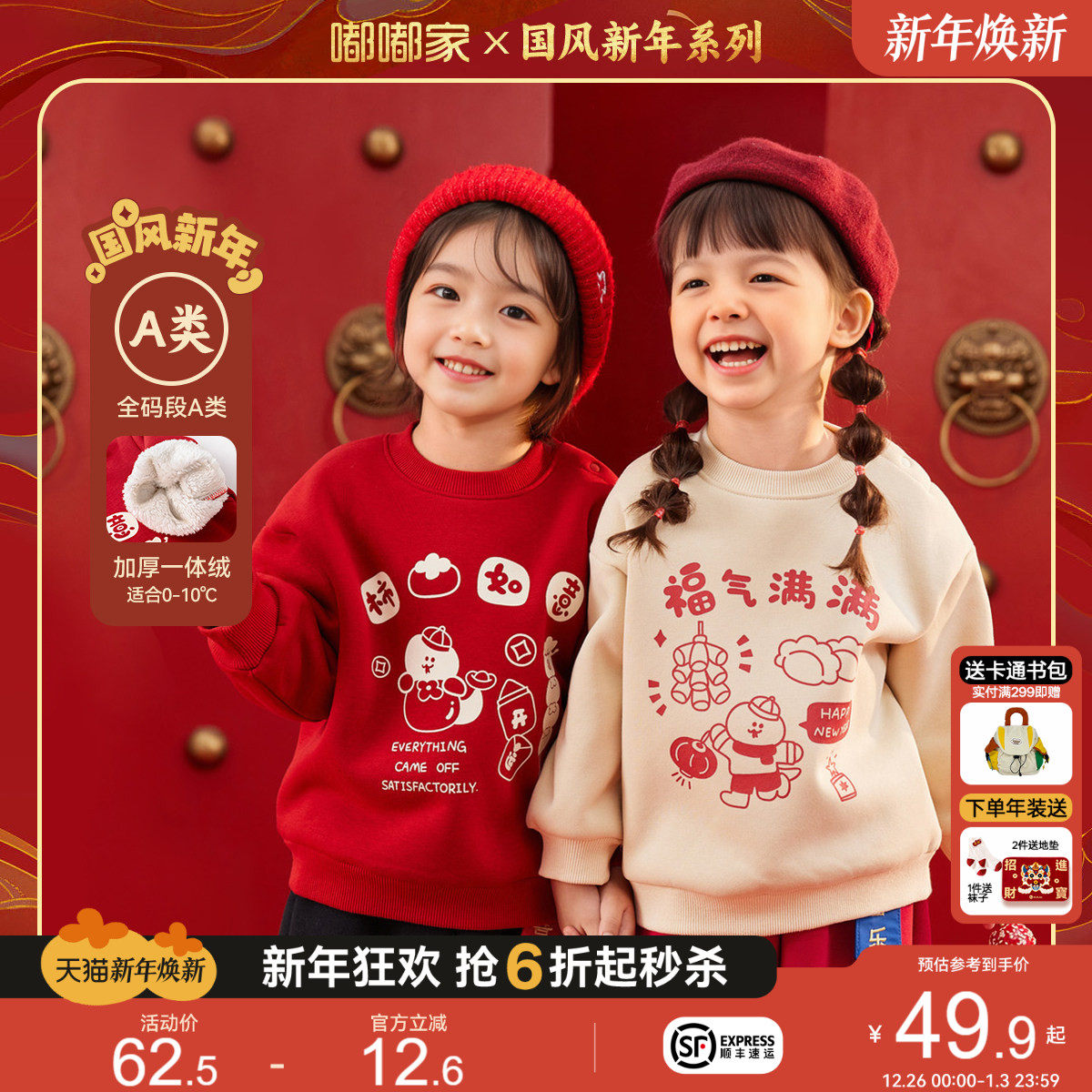 嘟嘟家儿童卫衣红色男童拜年服女童过年上衣宝宝冬装加绒新年衣服