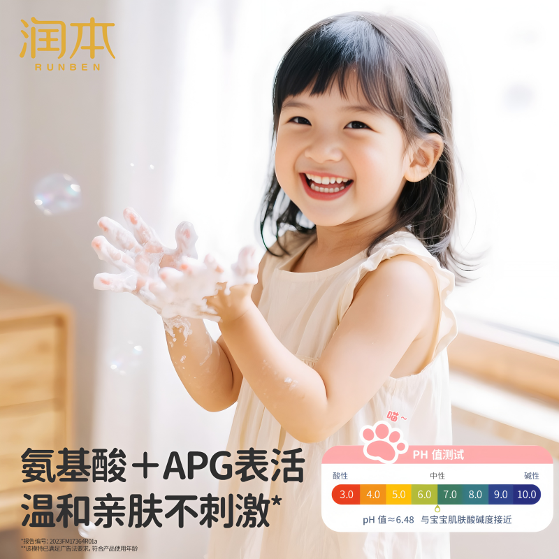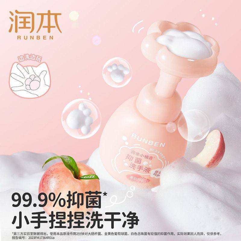 润本儿童洗手液婴幼儿宝宝专用泡沫型温和清洁植物护手家用按压瓶