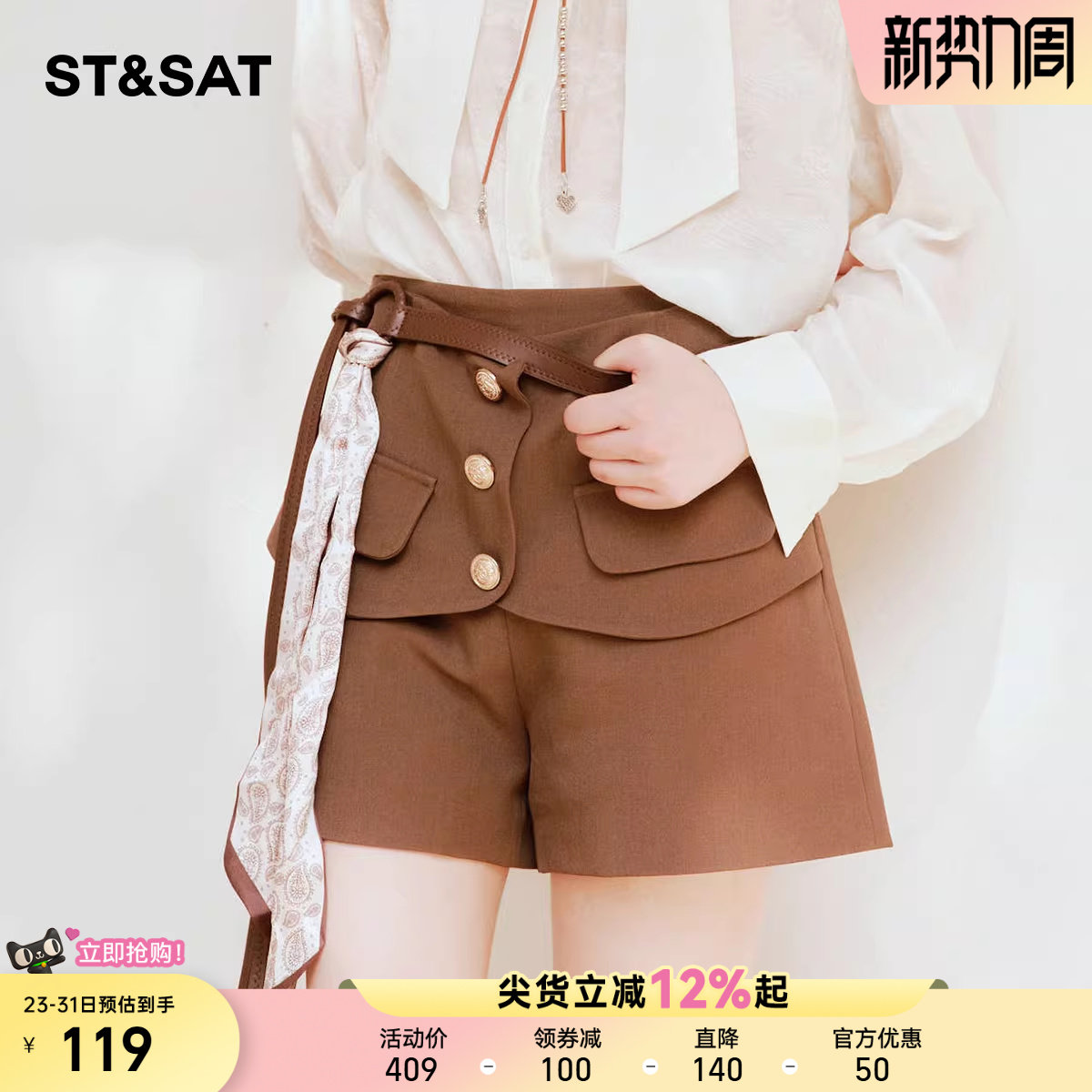 星期六设计感毛呢西装短裤女2025秋季新款复古高腰阔腿外穿靴裙裤