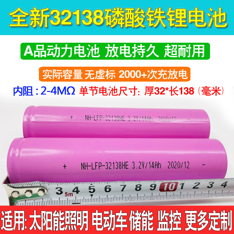 太阳能灯3.2V电池组32700磷酸铁锂6.4V大容量路灯照明32650蓄电池