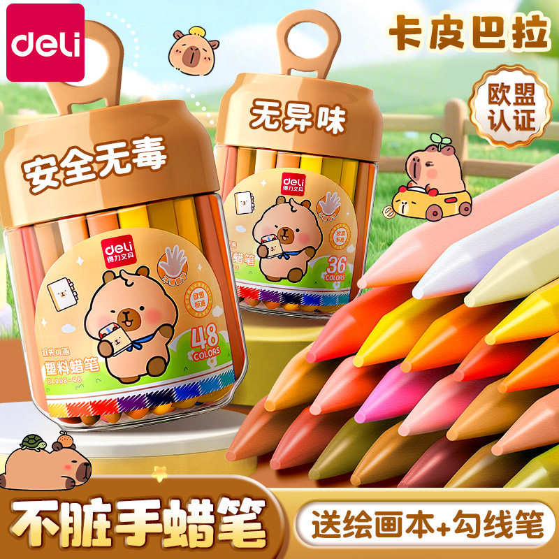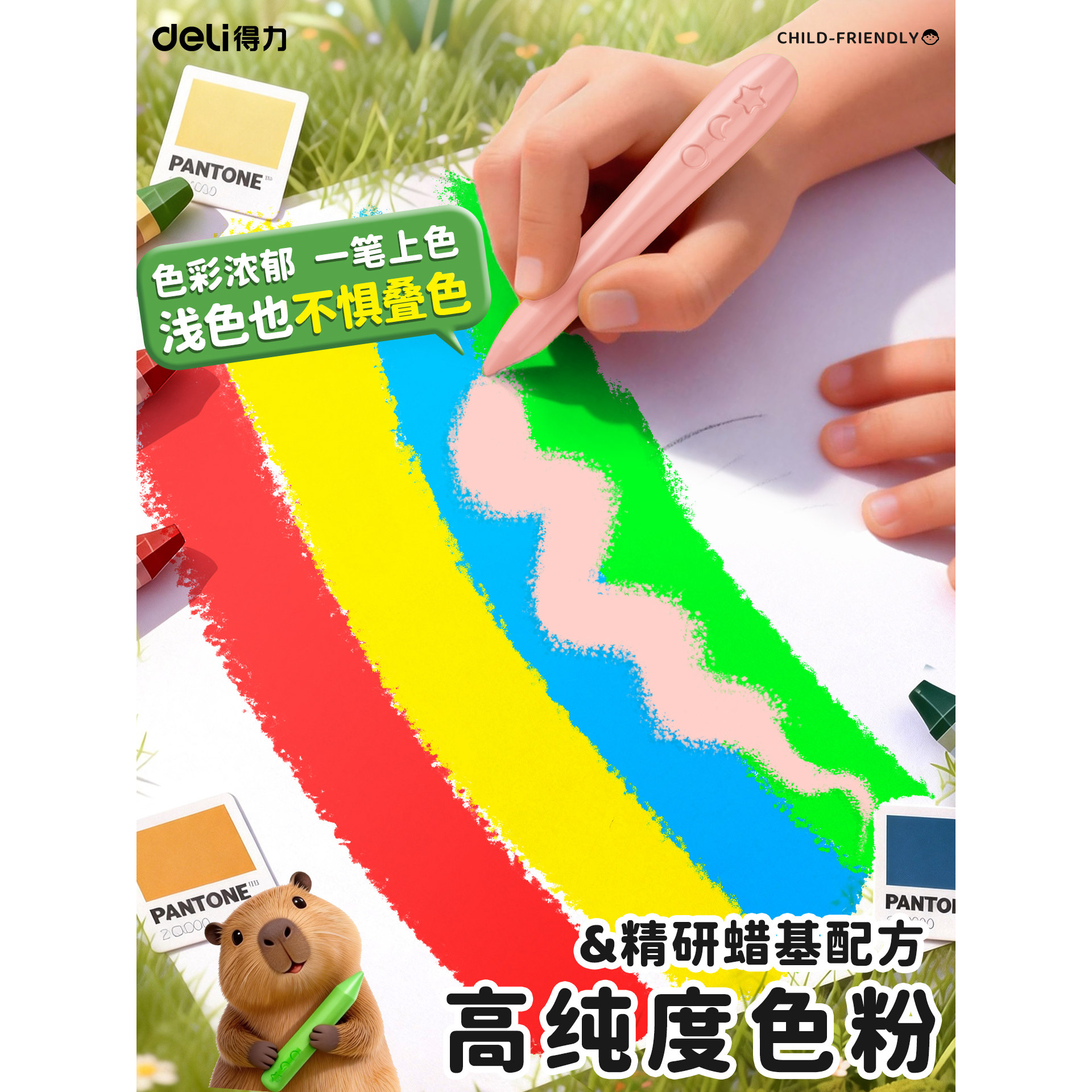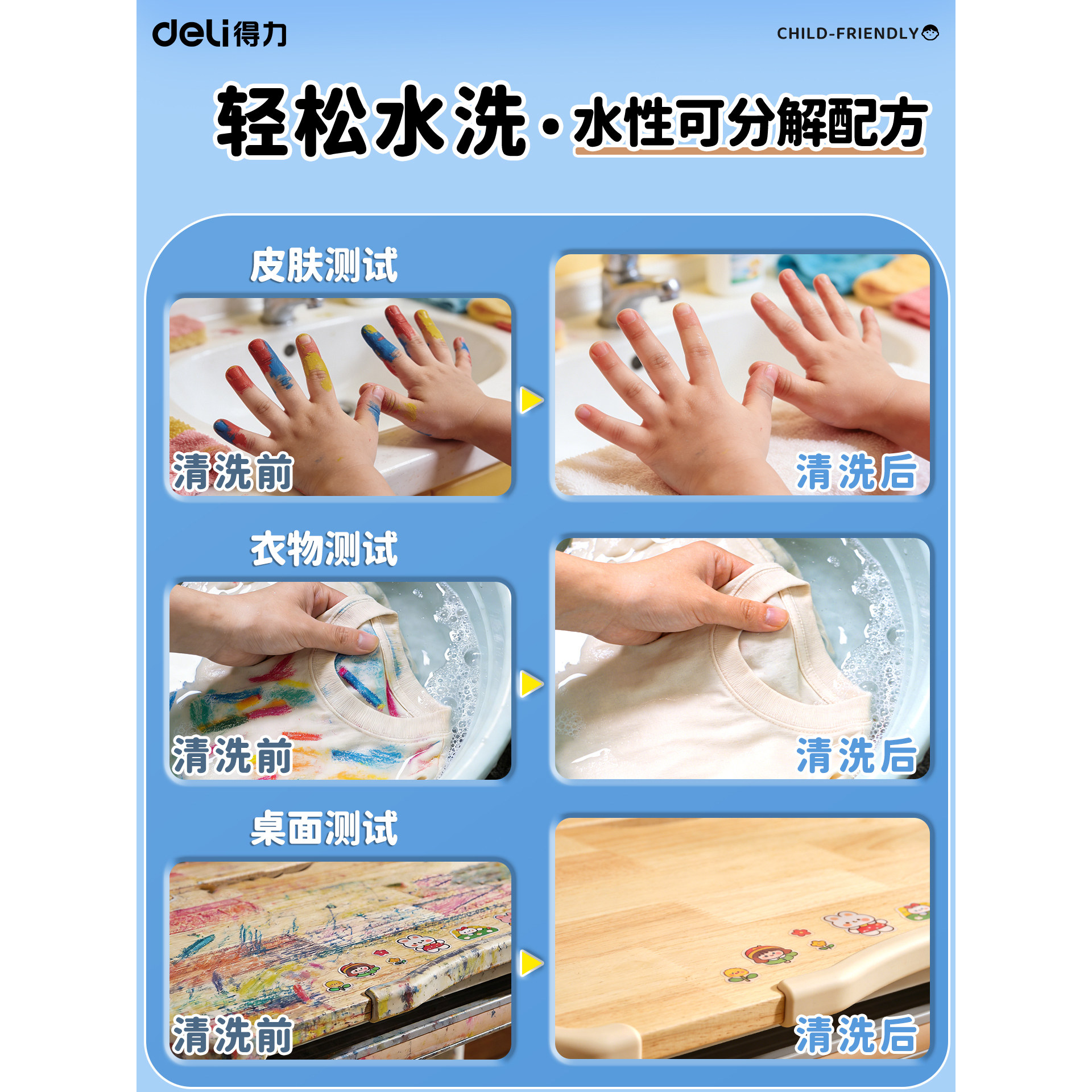 得力油画棒蜡笔幼儿园专用不脏手小学生儿童安全不沾手画笔可水洗彩色腊笔宝宝36色24色美术涂色画画无塑料毒