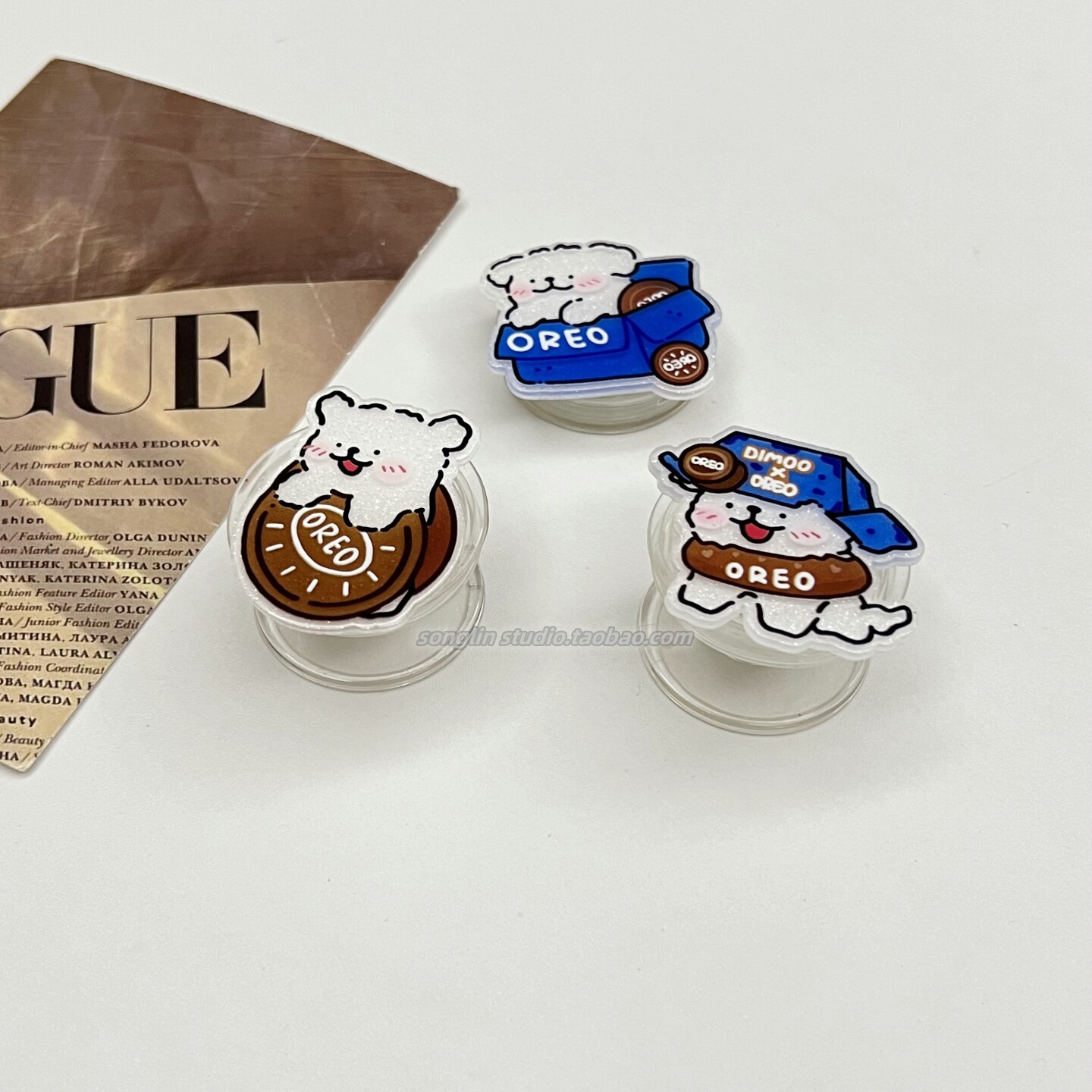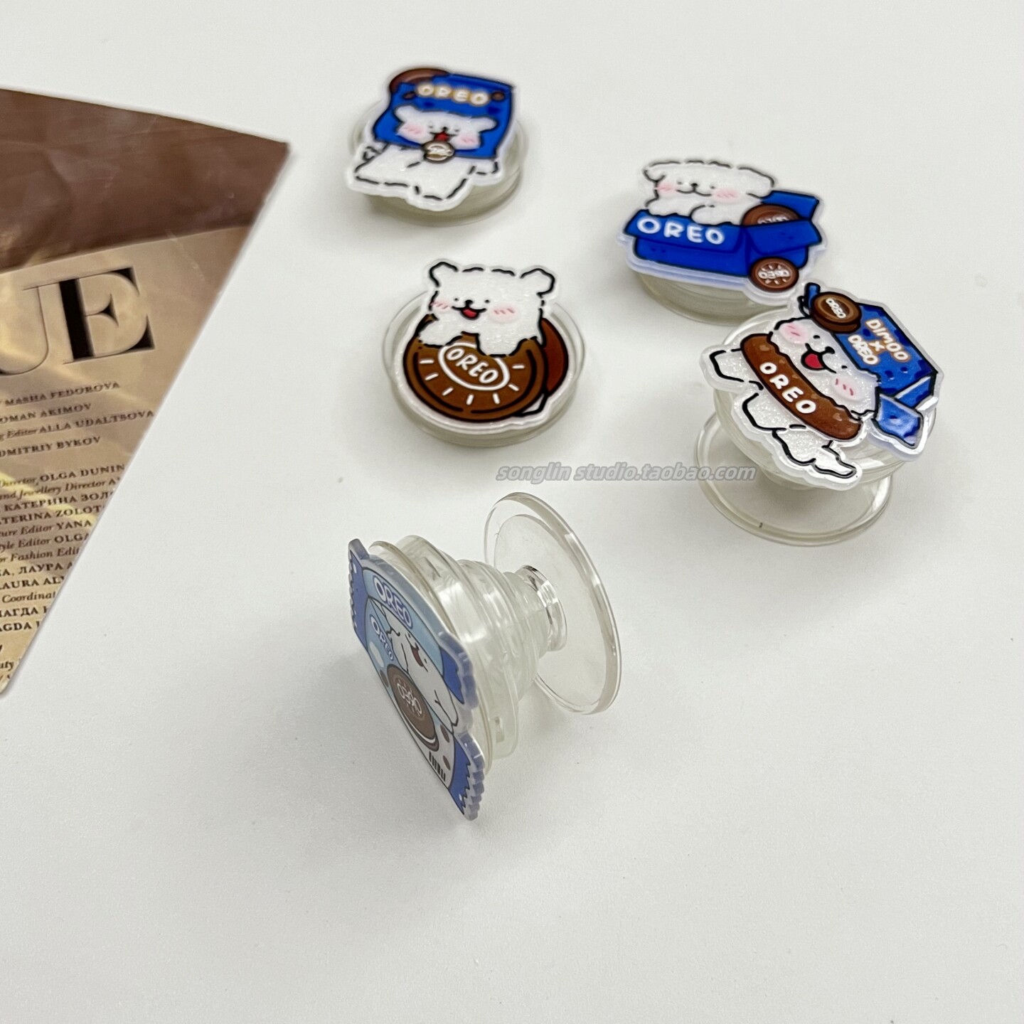简约奥利奥线条小狗支架手机壳追剧可伸缩桌面支撑粘贴式气囊支架