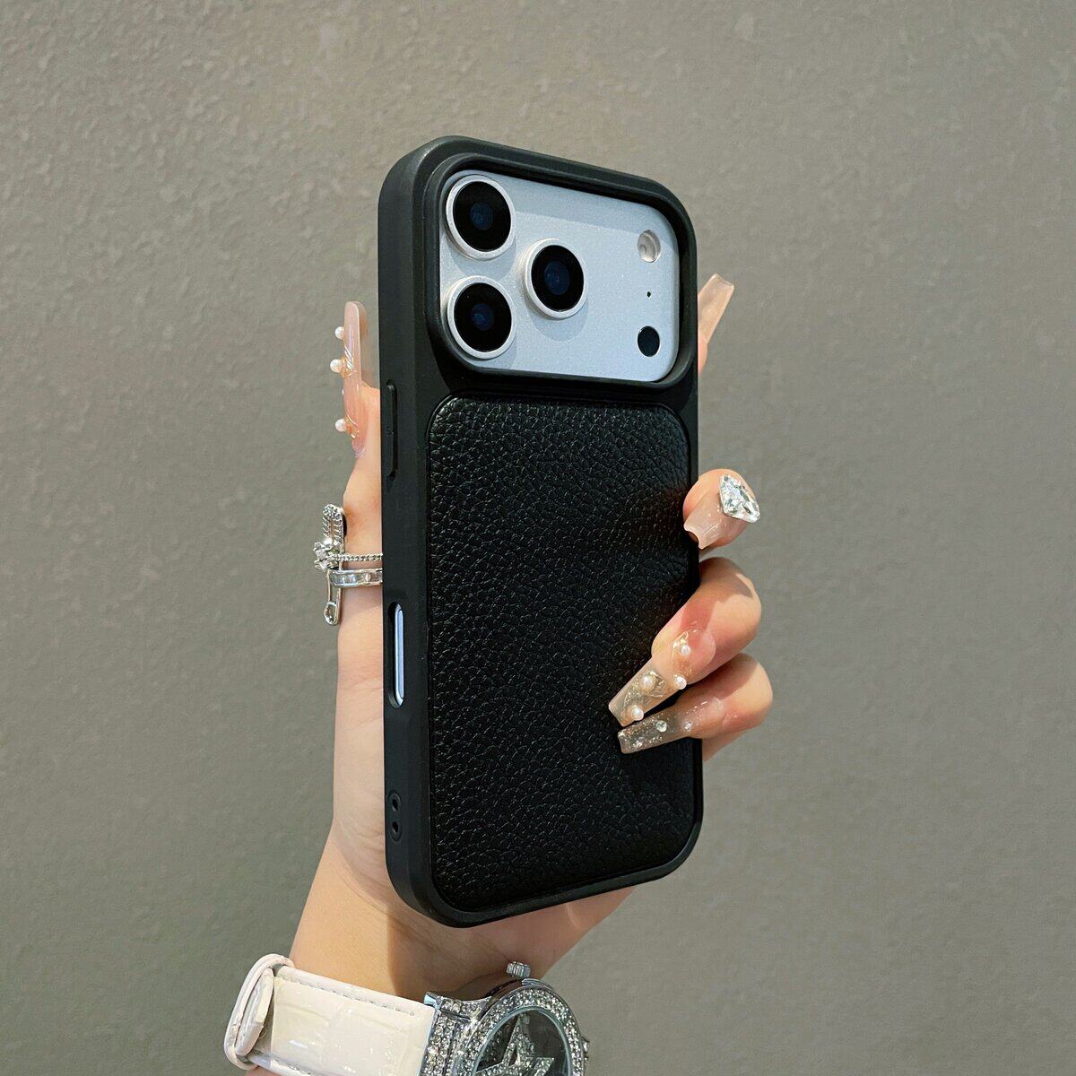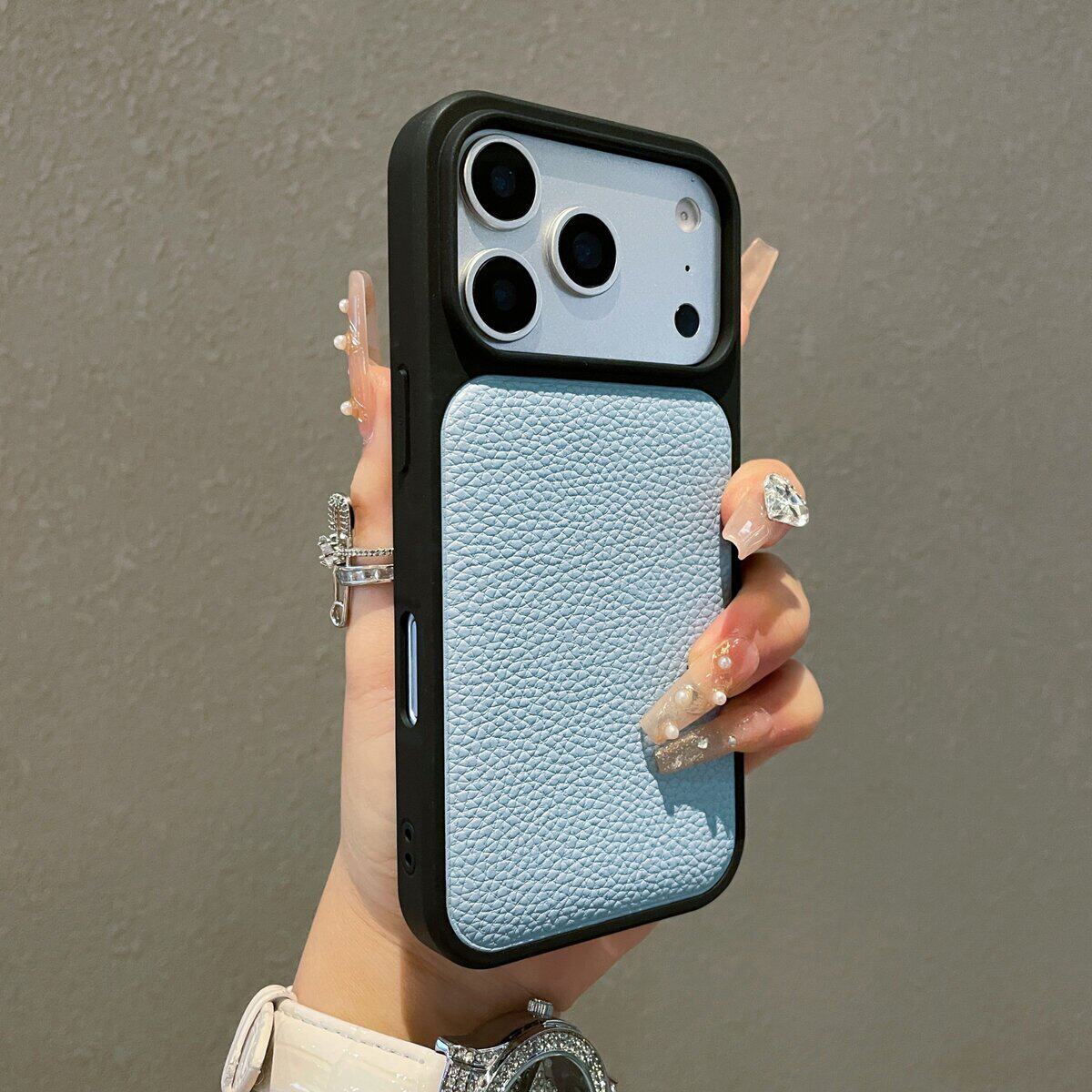 荔枝纹适用苹果17ProMax手机壳iPhone16Pro真皮全包简约保护套15promax硅胶撞色皮质壳17高级感16小众手机套