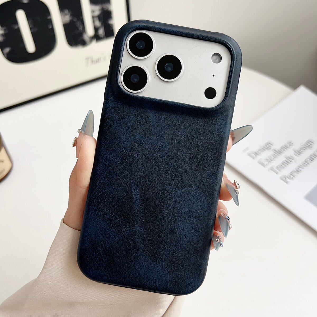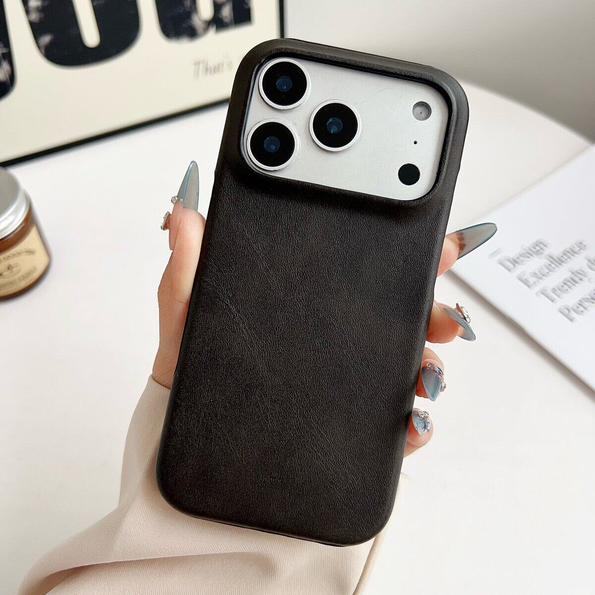 复古牛皮革纹适用苹果17promax手机壳新款简约成熟iphone16Pro半包防摔外壳