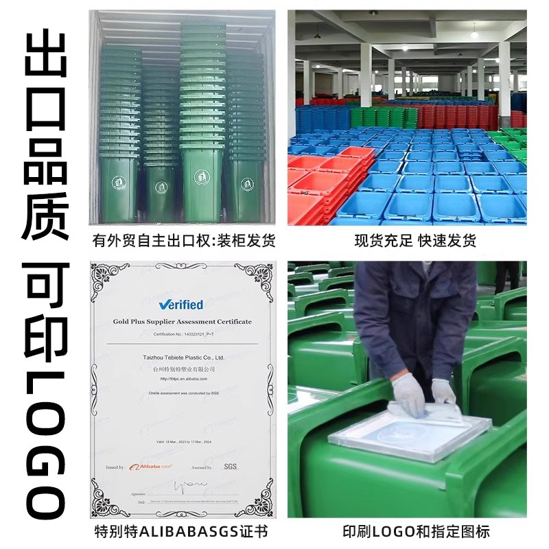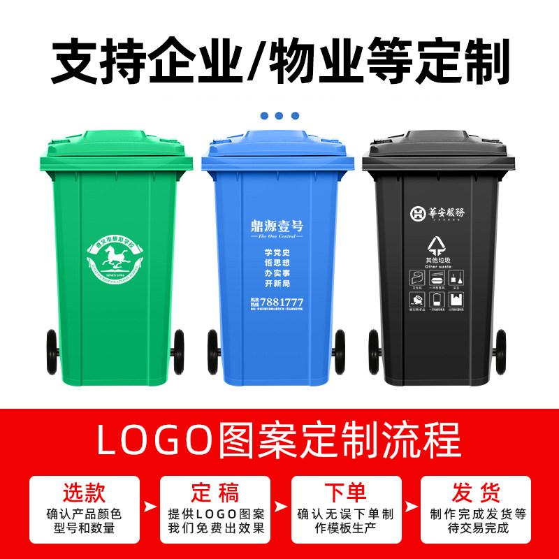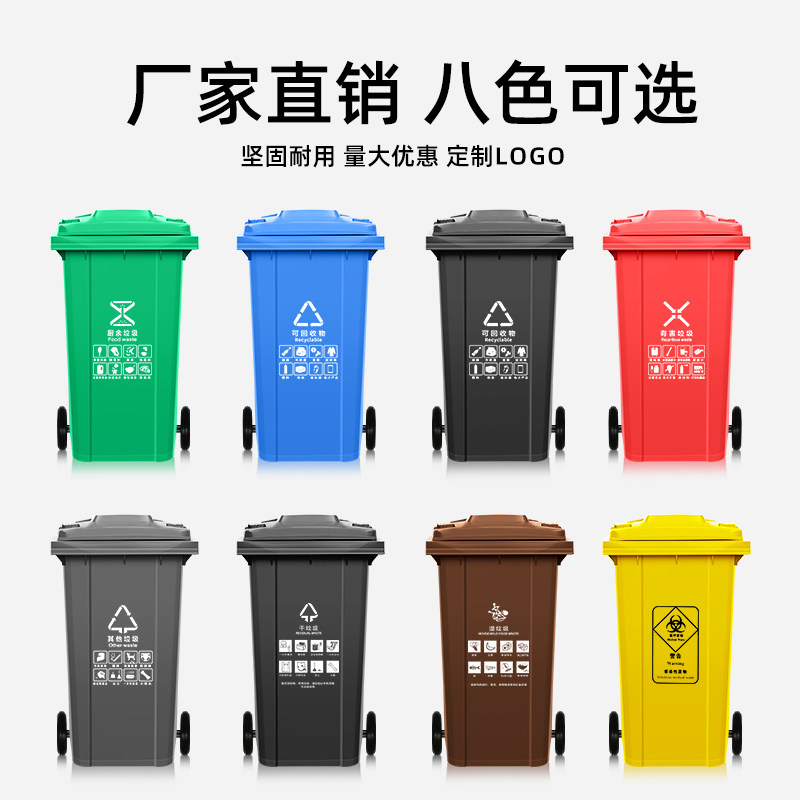 户外干湿分类垃圾桶大号户外商用240升120L挂车大容量箱小区轮盖