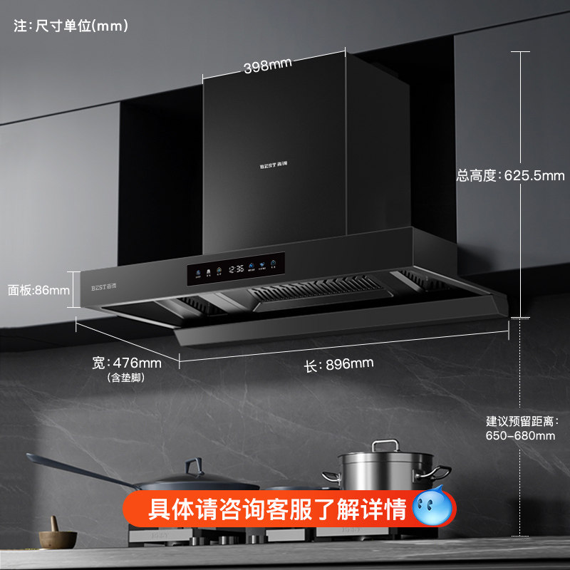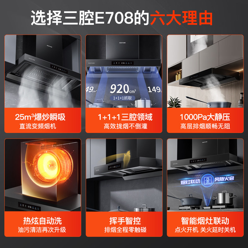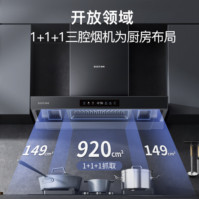 智能联动1+1+1三腔高效吸排,智慧厨房必备