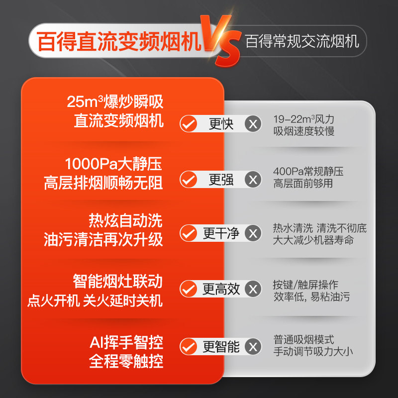 华帝百得油烟机官方旗舰店三腔变频大吸力自动清洗抽烟机家用E708
