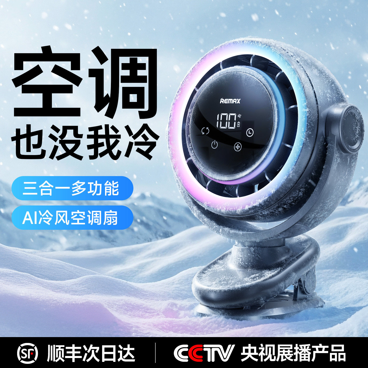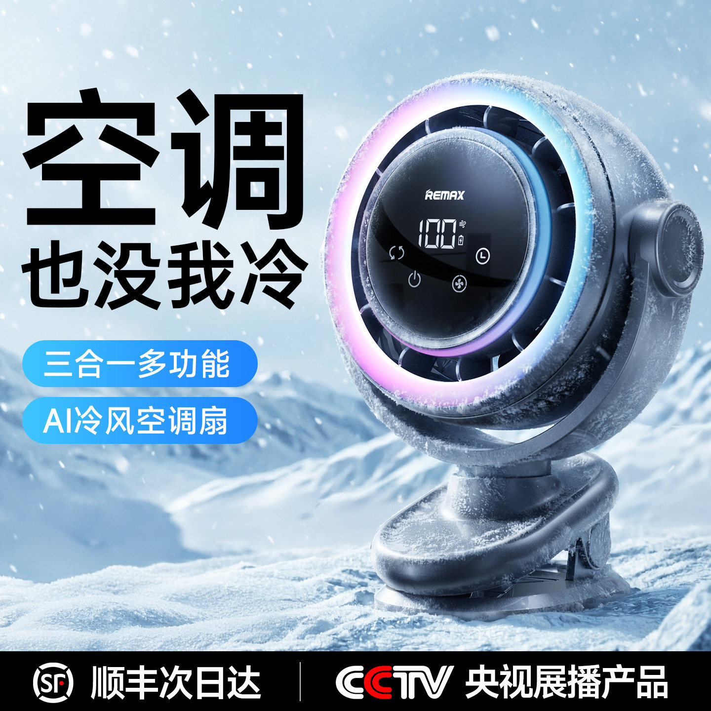 remax睿量2026新款空调扇桌面小风扇制冷小型家用静音办公室桌usb充电风扇长续航学生宿舍床夹式便携制冷神器