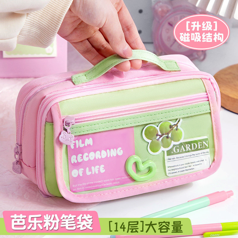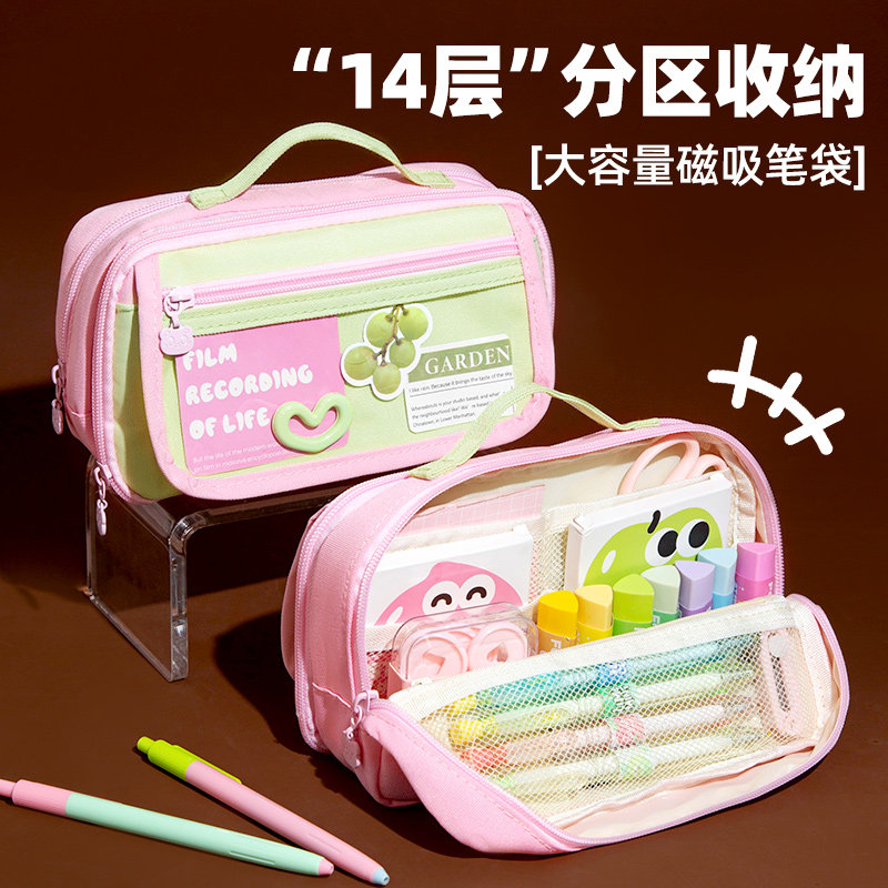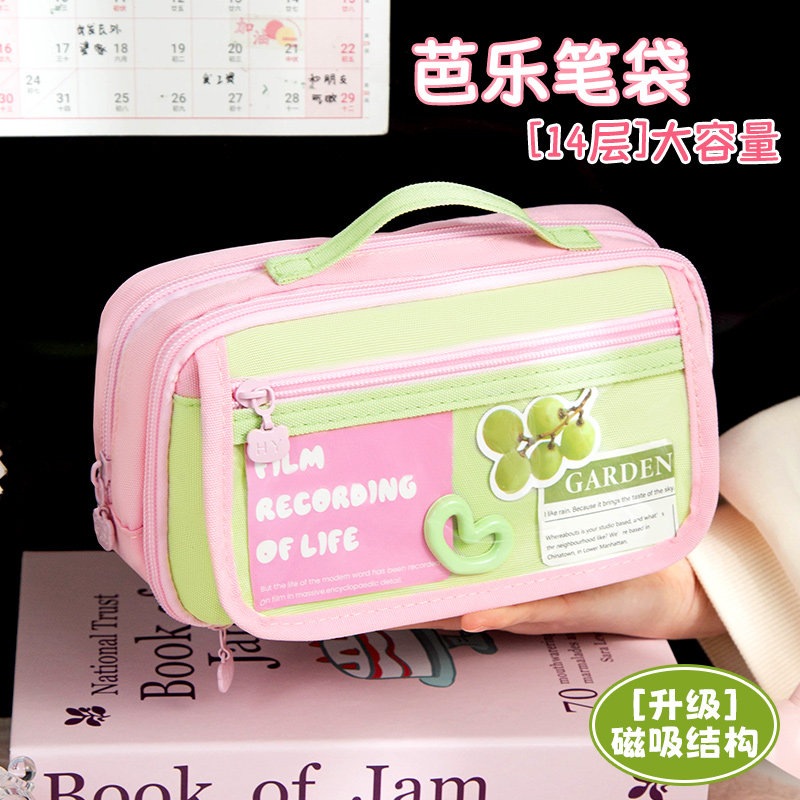 元气芭乐~2026新款14层超大容量磁吸笔袋女孩小学生可立式铅笔盒