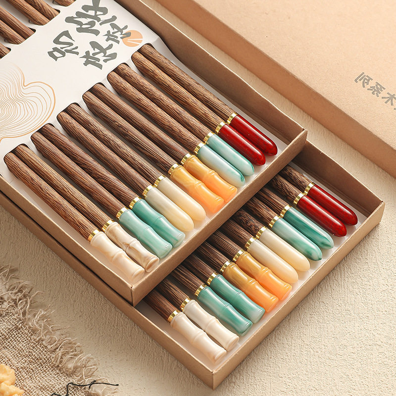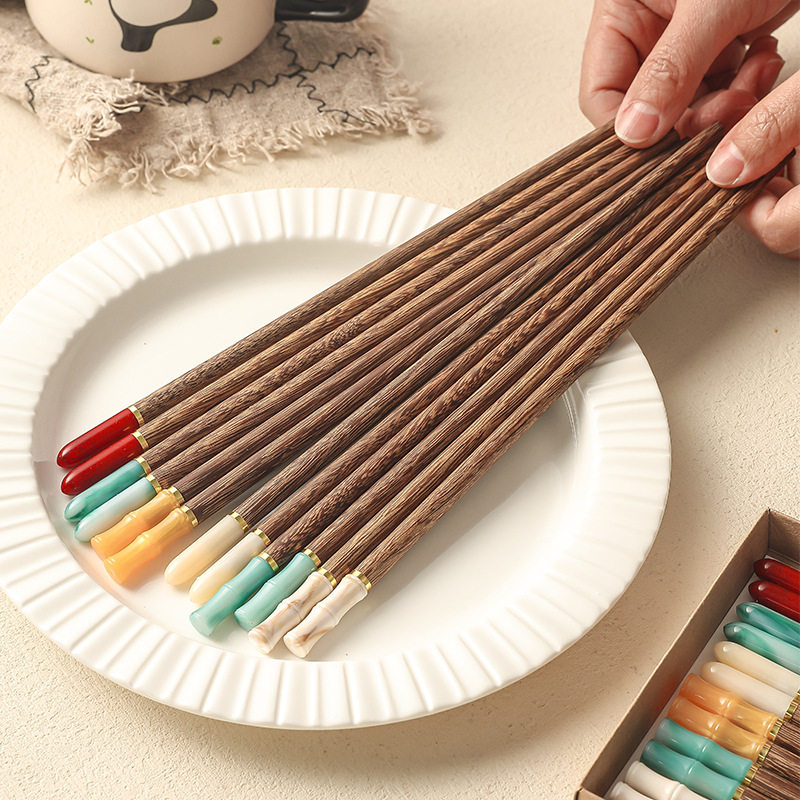 分餐筷子一人家用鸡翅木无漆无蜡高档抗菌防霉中式仿玉石吃饭防滑