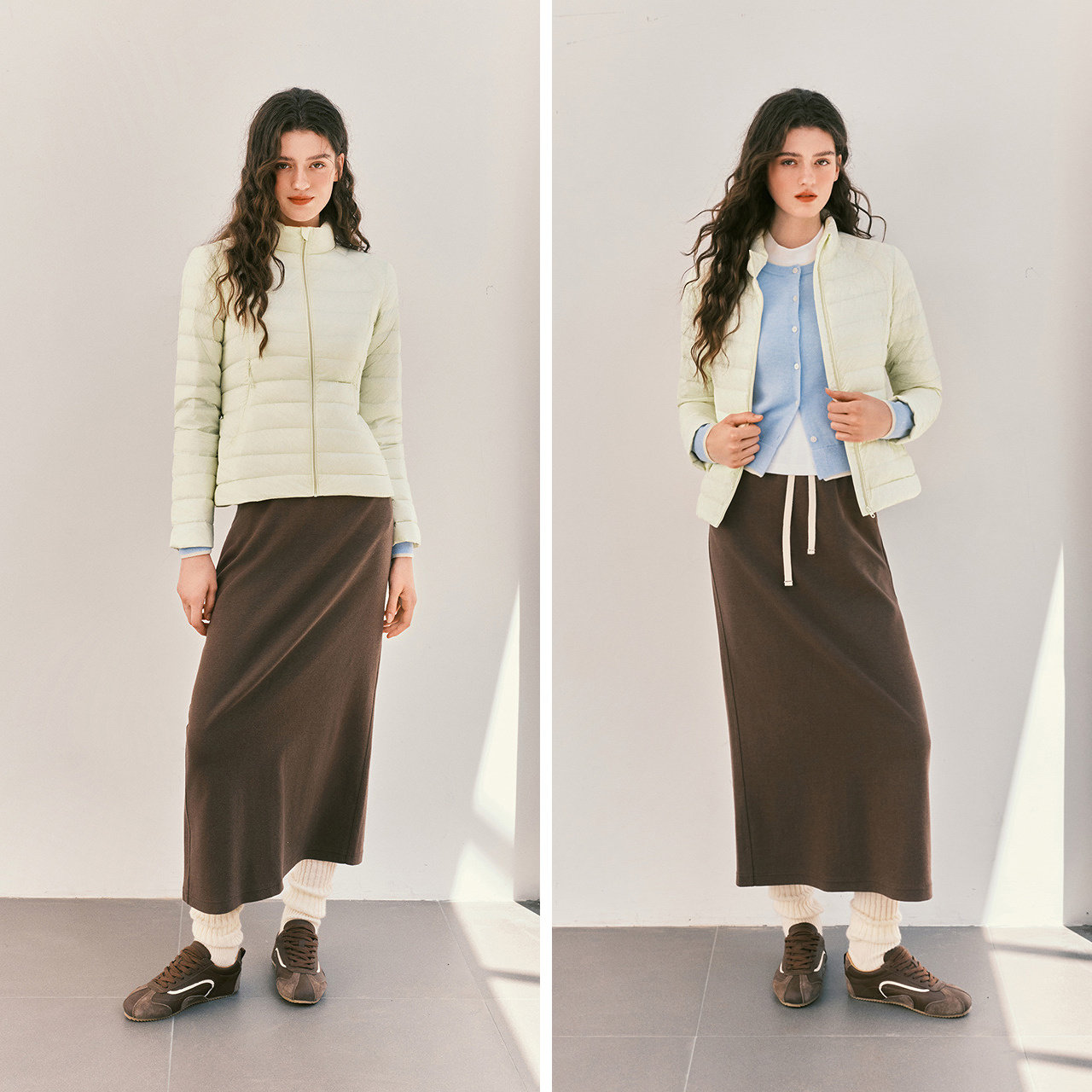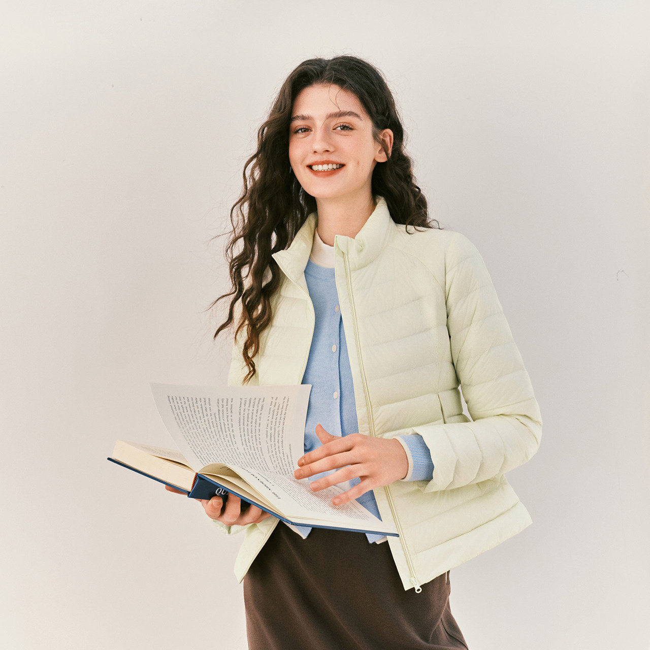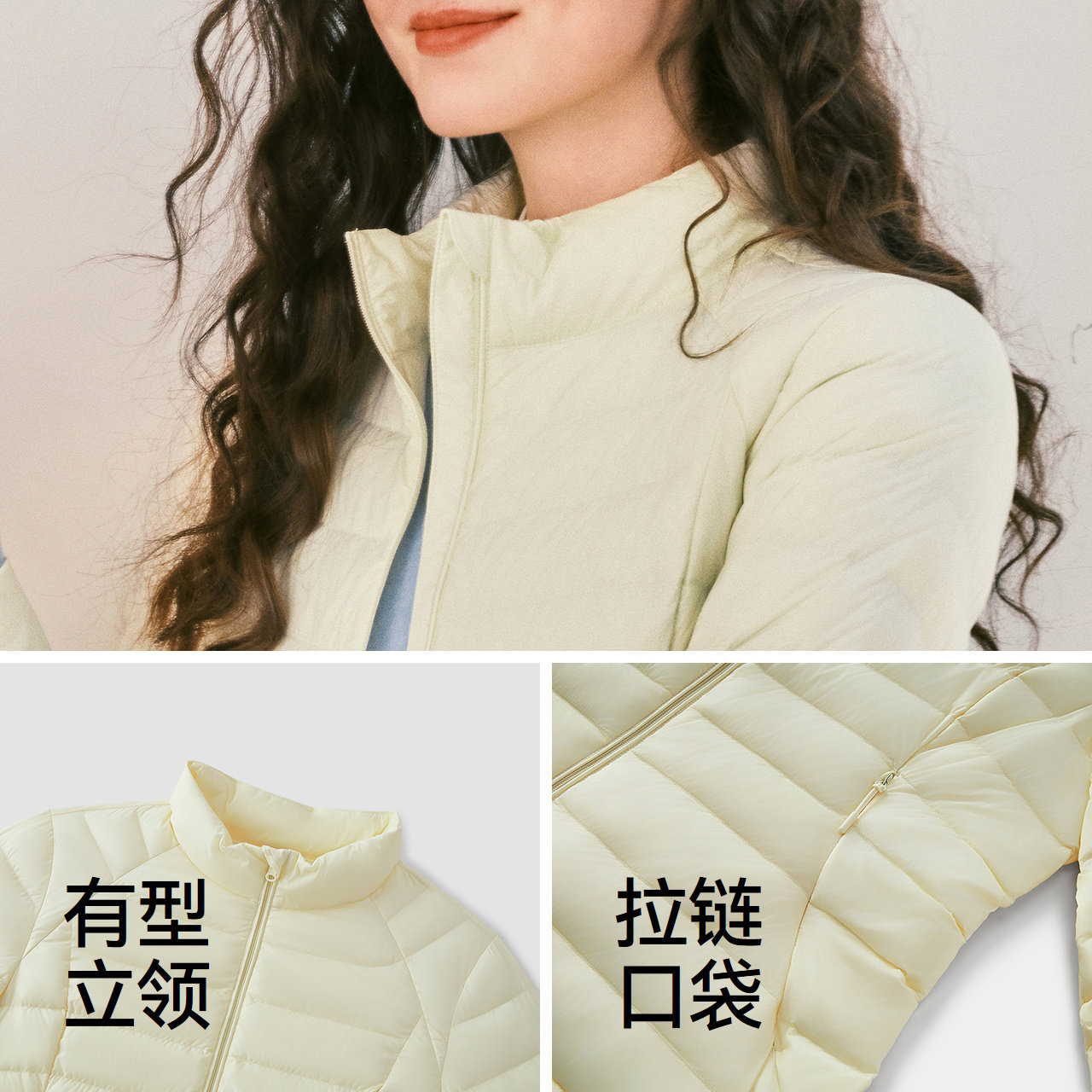 鸭鸭轻薄羽绒服女2025年秋冬反季短款立领修身舒适上衣内胆外套J