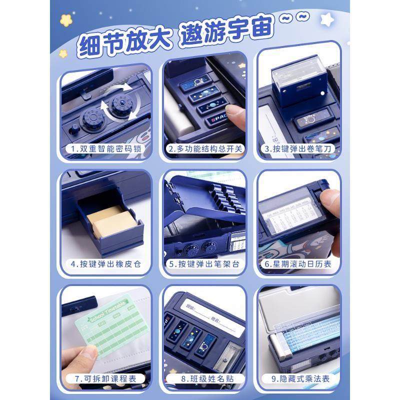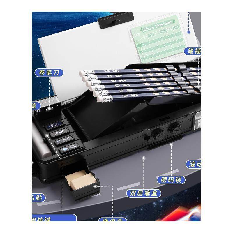 多功能文具盒密码锁自动铅笔盒双层男孩款智能机关儿童笔盒女小学