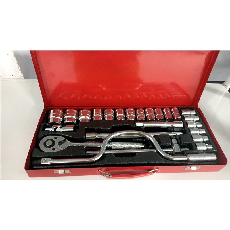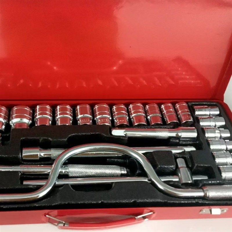 红铁盒24件套组套40长套筒扳手 汽修五金工具修车套装摇杆弯