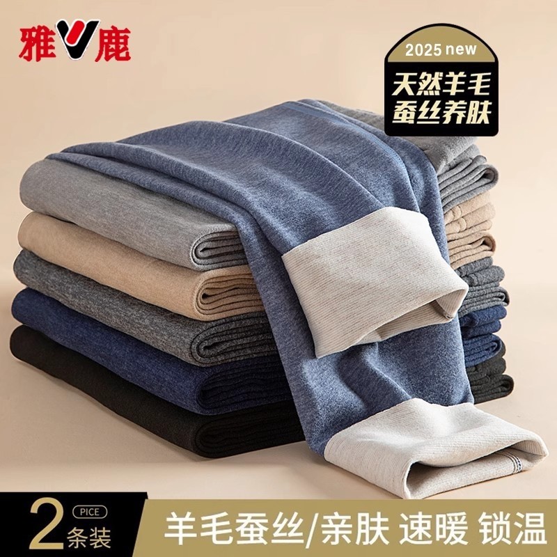雅鹿秋裤男款保暖裤男秋冬薄款打底羊绒蚕丝男士无痕发热2025新款