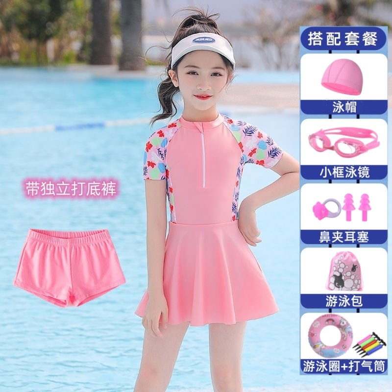 儿童泳衣女新款连体保守游泳衣套装女孩小中大童泳装学生游泳装备