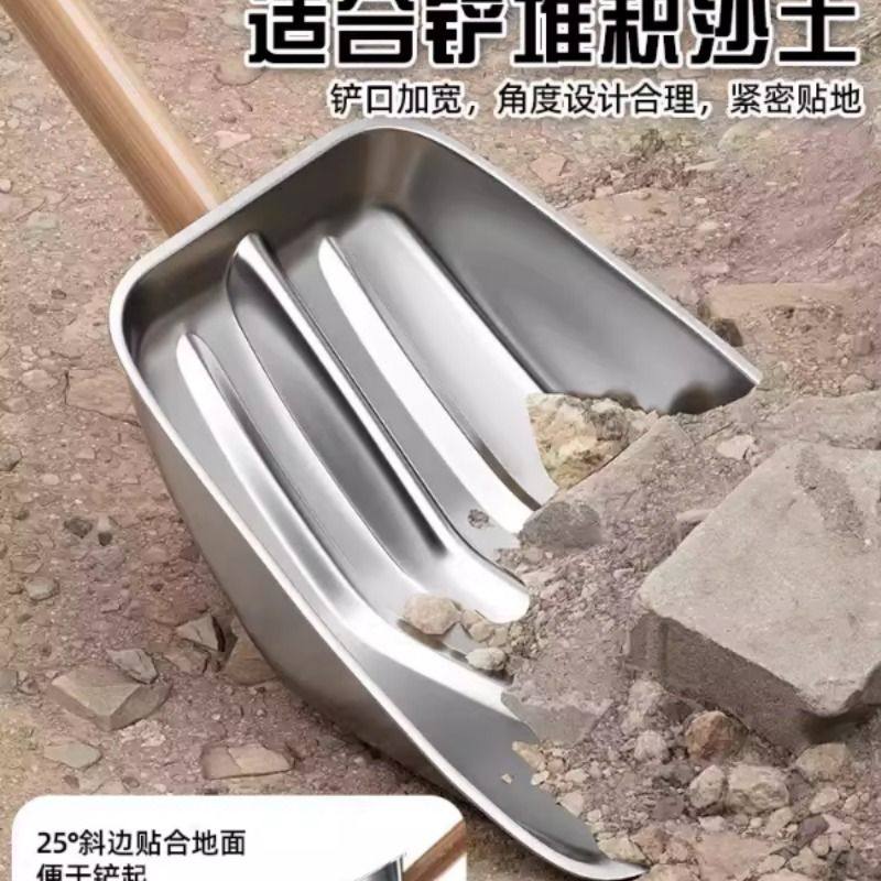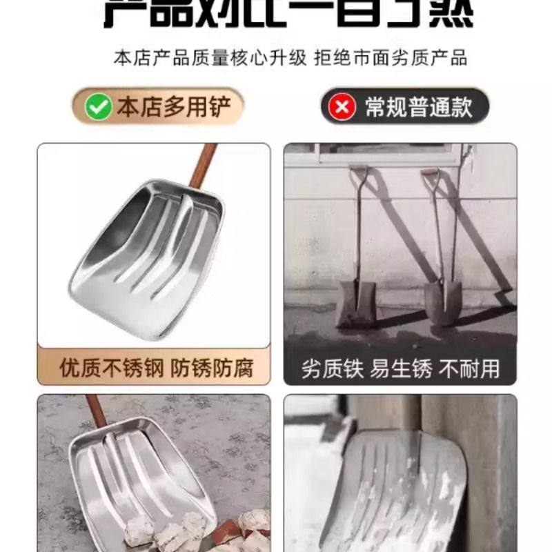 加厚不锈钢铲子家用地面铲雪锹农具加大雪铲户外推雪铲多功能铁锹