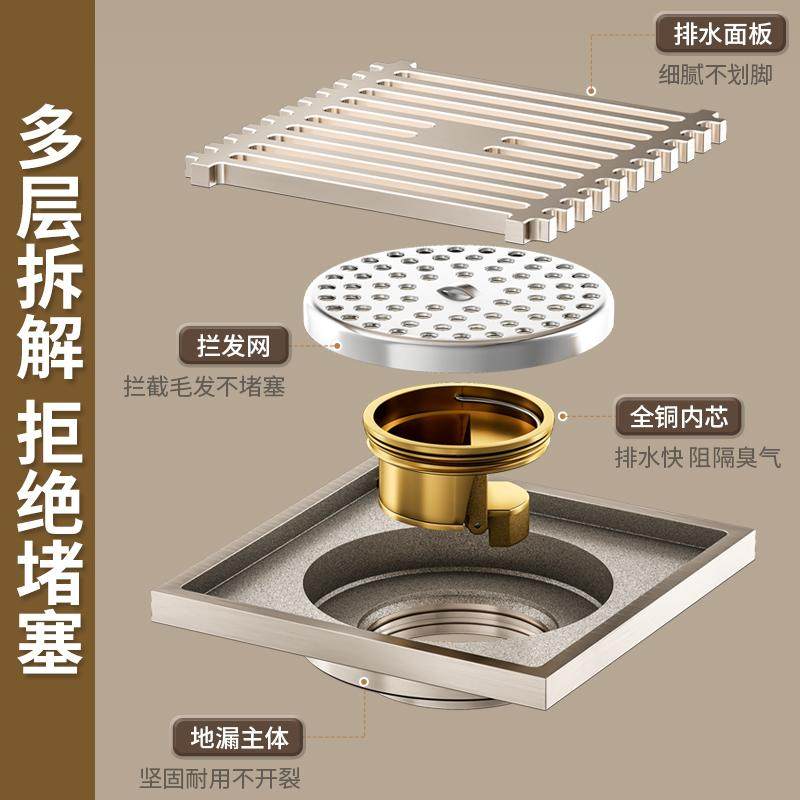 地漏加厚不锈钢防臭五金过滤芯卫生间阳台全铜下水道洗衣机浴室