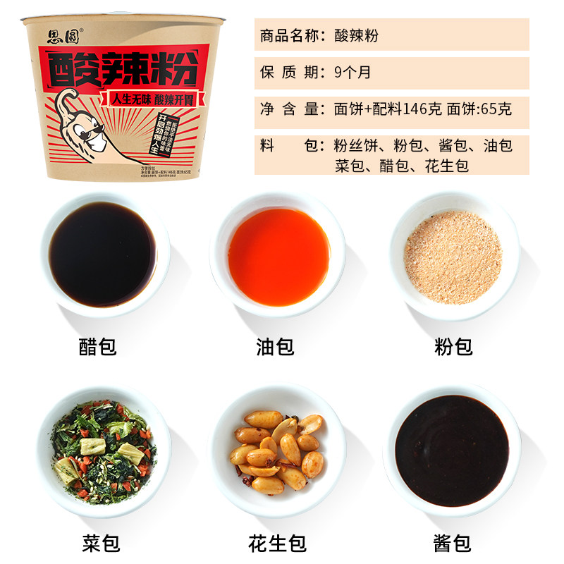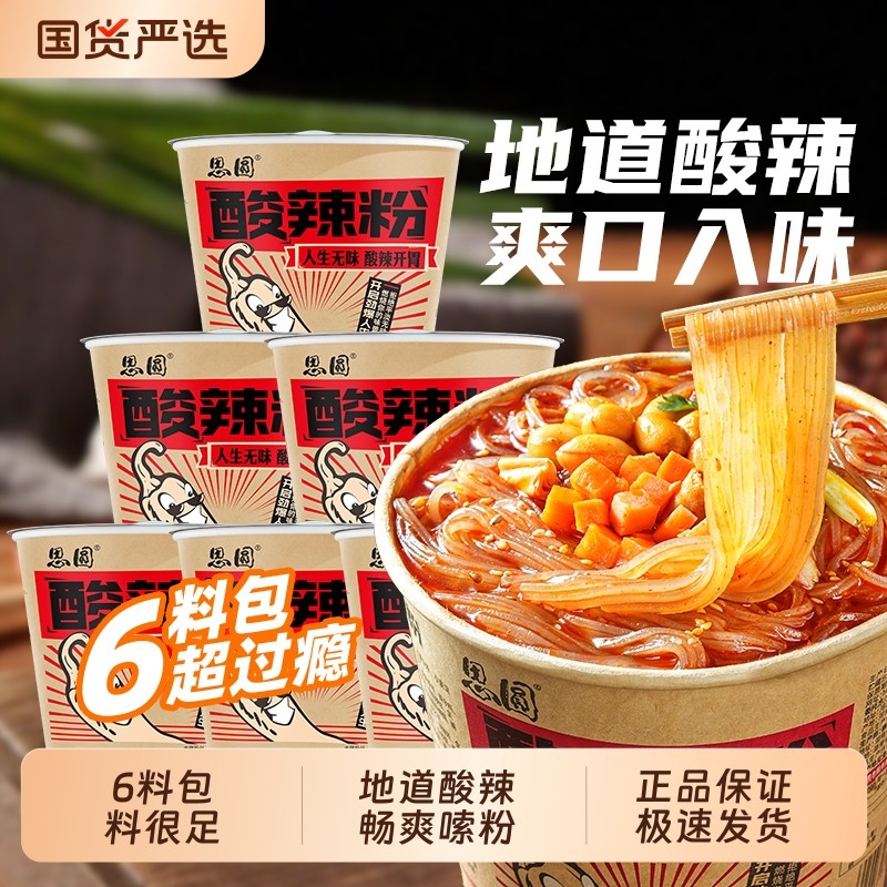 思圆酸辣粉正宗粉丝重冲泡方便速食网红整箱桶装黑金版麻辣休闲