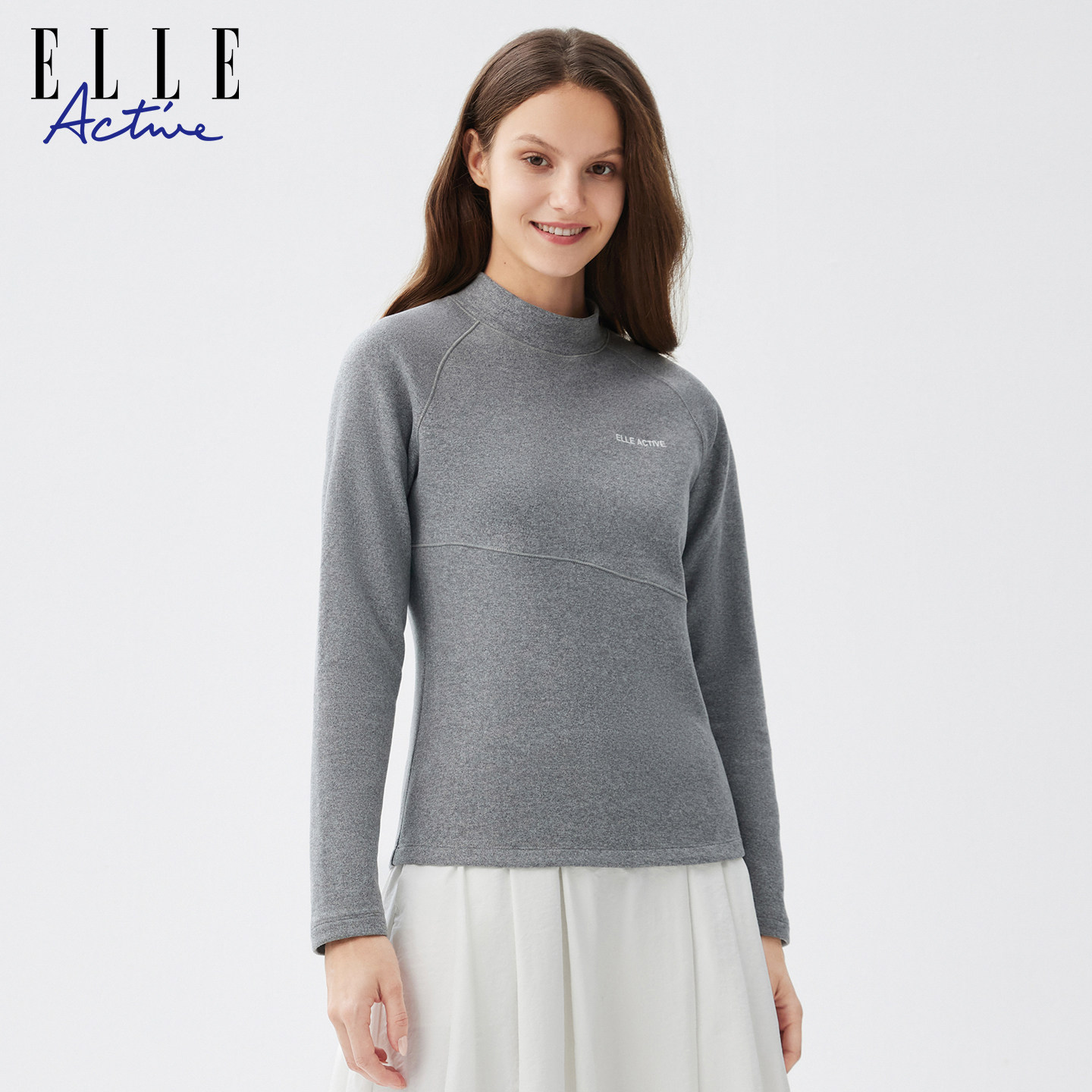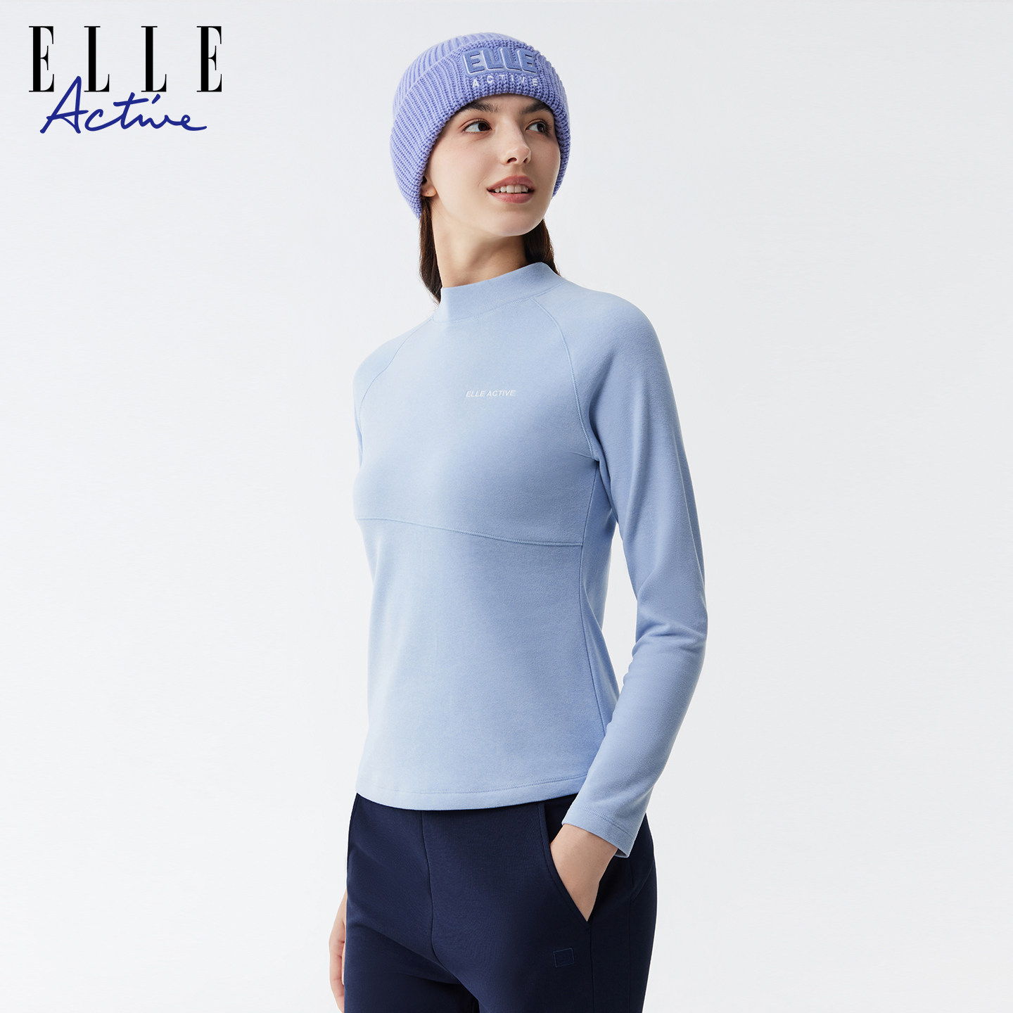【含绵羊毛】ELLE Active户外运动长袖t恤女德绒半高领内搭上衣