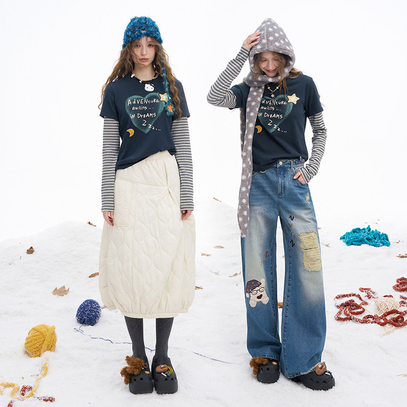 三福长袖上衣女2025新款秋冬季圆领内搭打底衫修身白色t恤女装